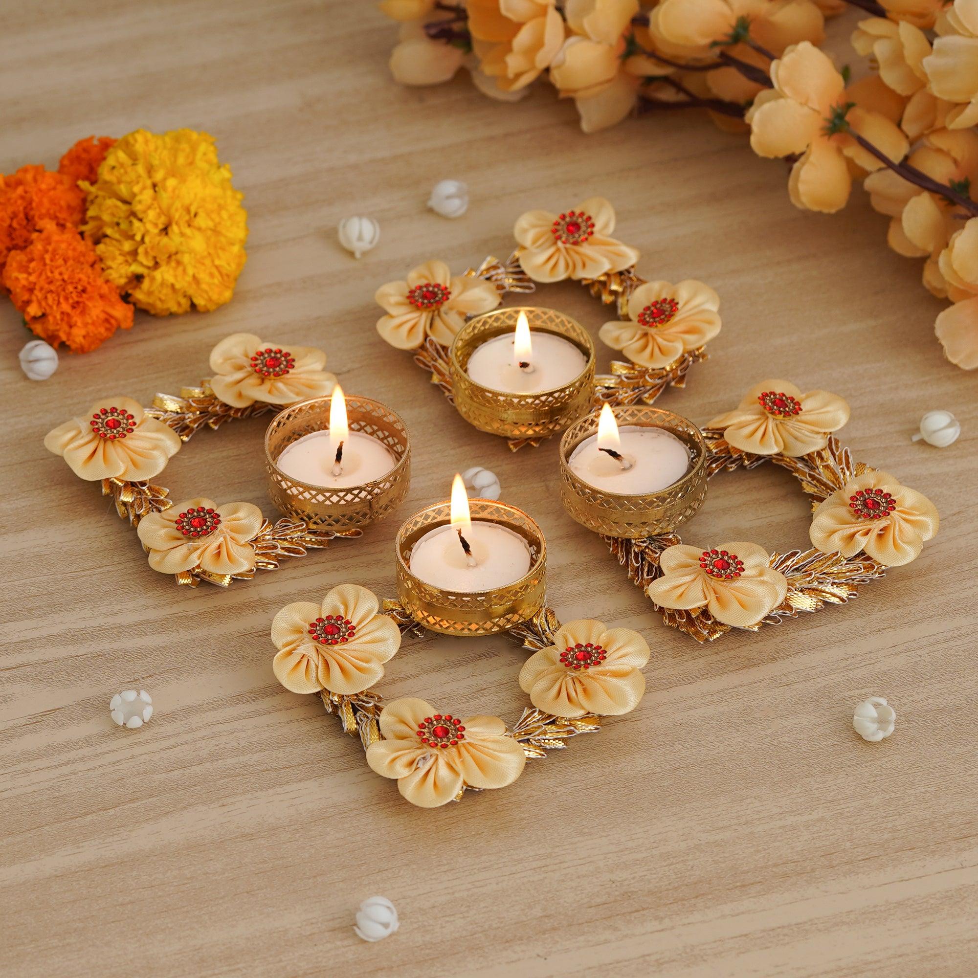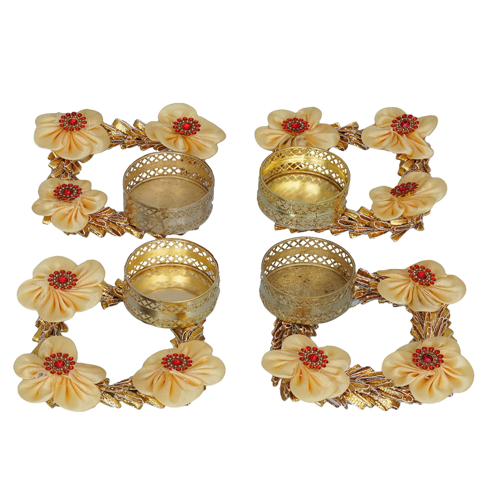 Webelkart Premium Handmade Set of 4 Diwali tealight Candle Holder for Home and Pooja Room Decorations| Decorative Diyas for Diwali ( Pack of 4)