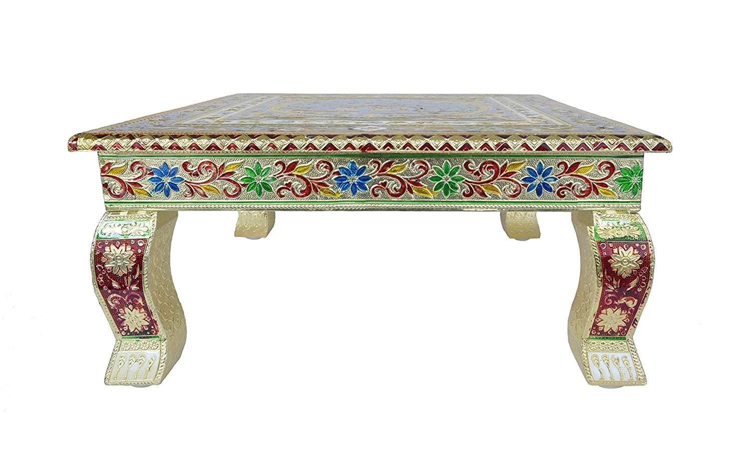 JaipurCrafts Wood Pooja Chowki (12 x 12 x 4 inch, Multicolour) Patla