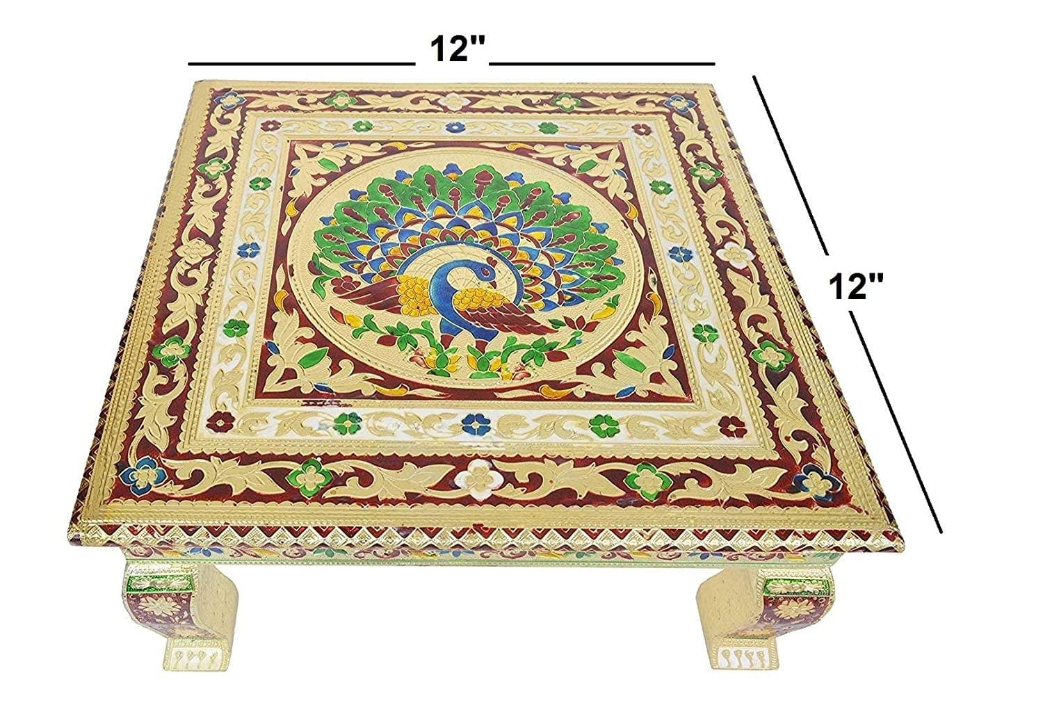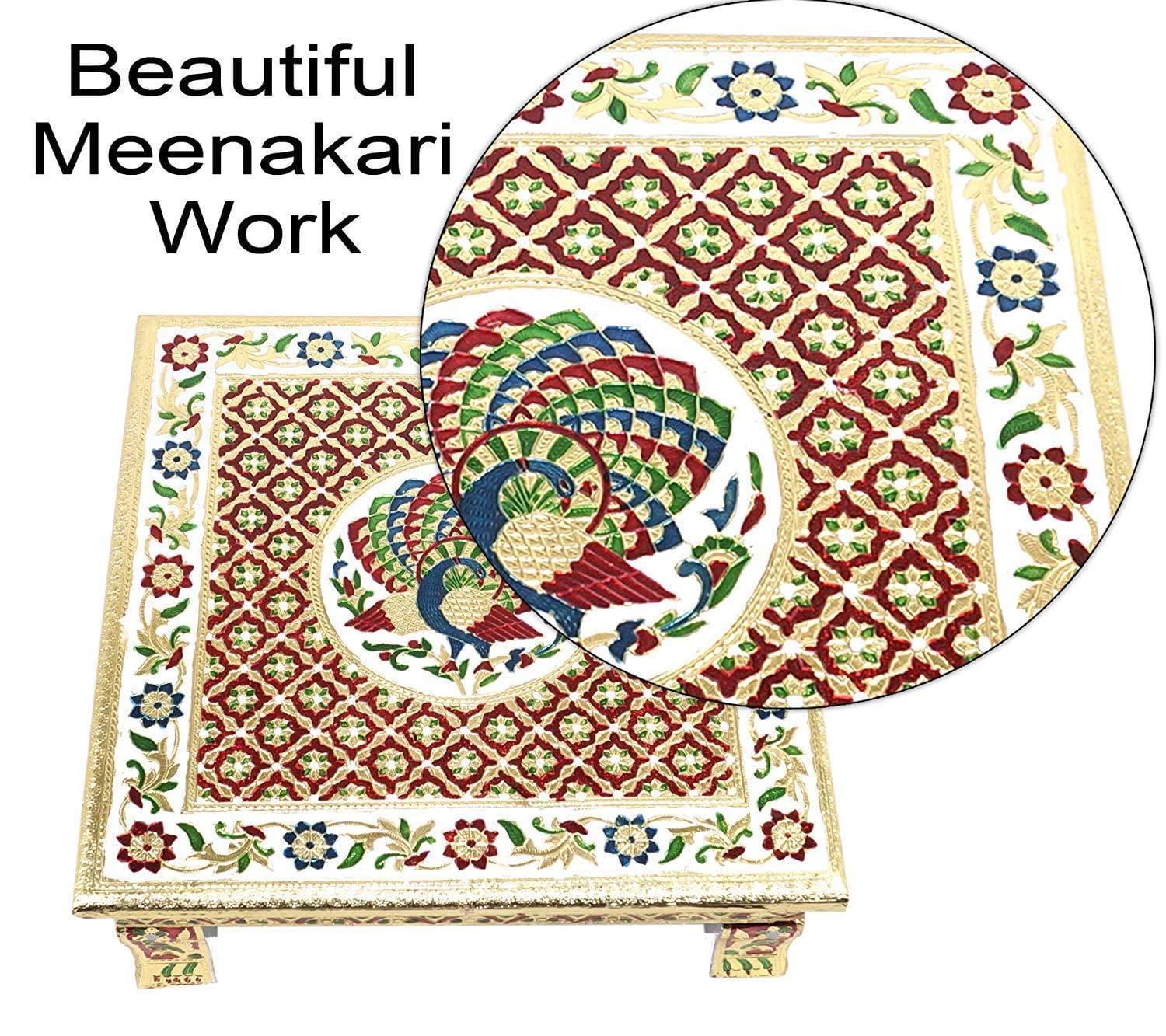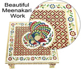 - Package Contents : 1 Meenakari Wooden Peacock Design Pooja Chowki