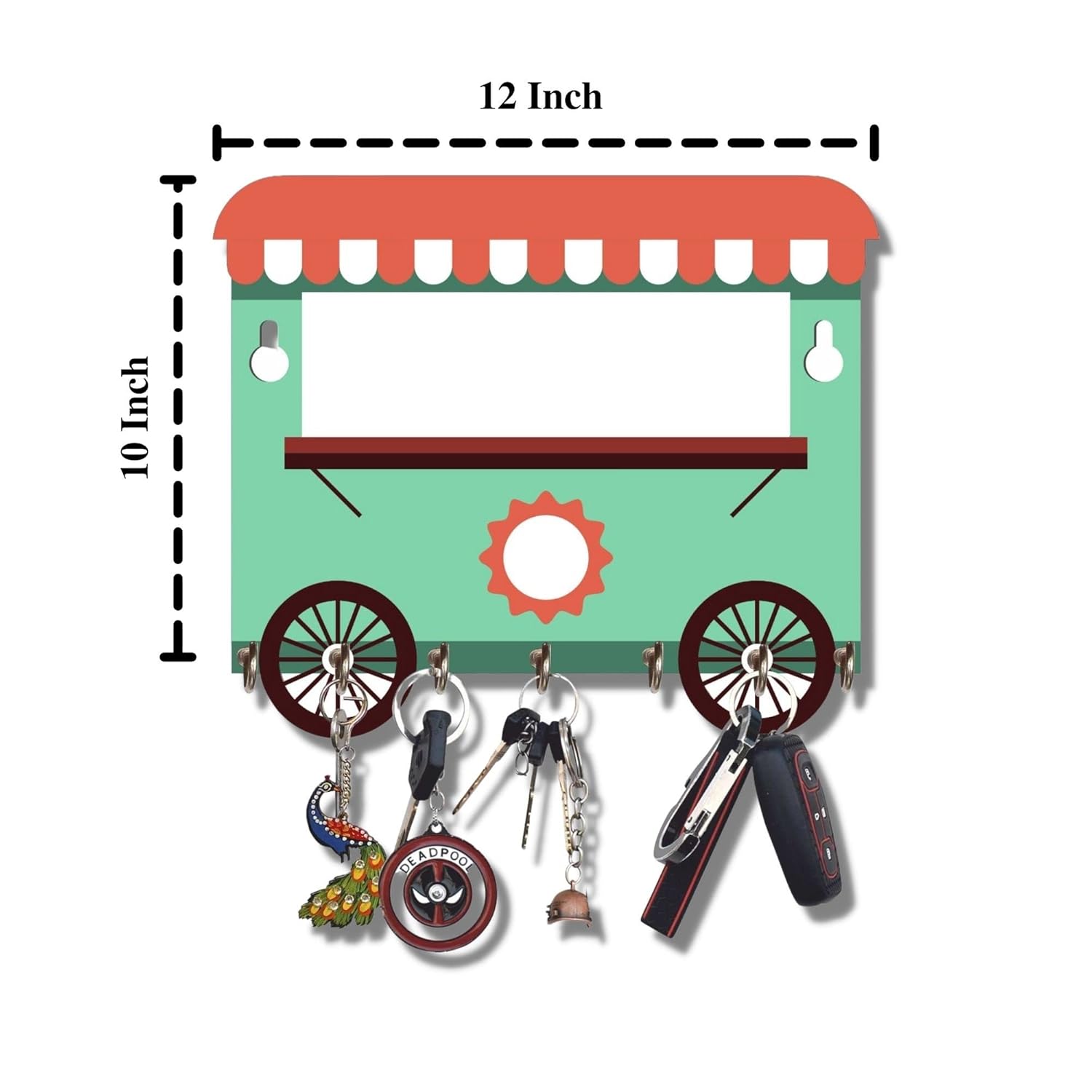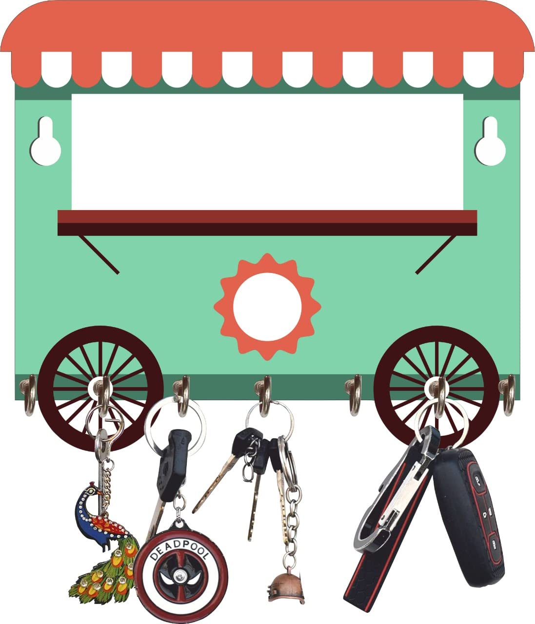 Webelkart Premium HD UV Printed Retro Food Cart Shaped Keys Wooden Key Holder (12 Inch x 10 Inch, Wood, Multicolor)- 7 Hooks