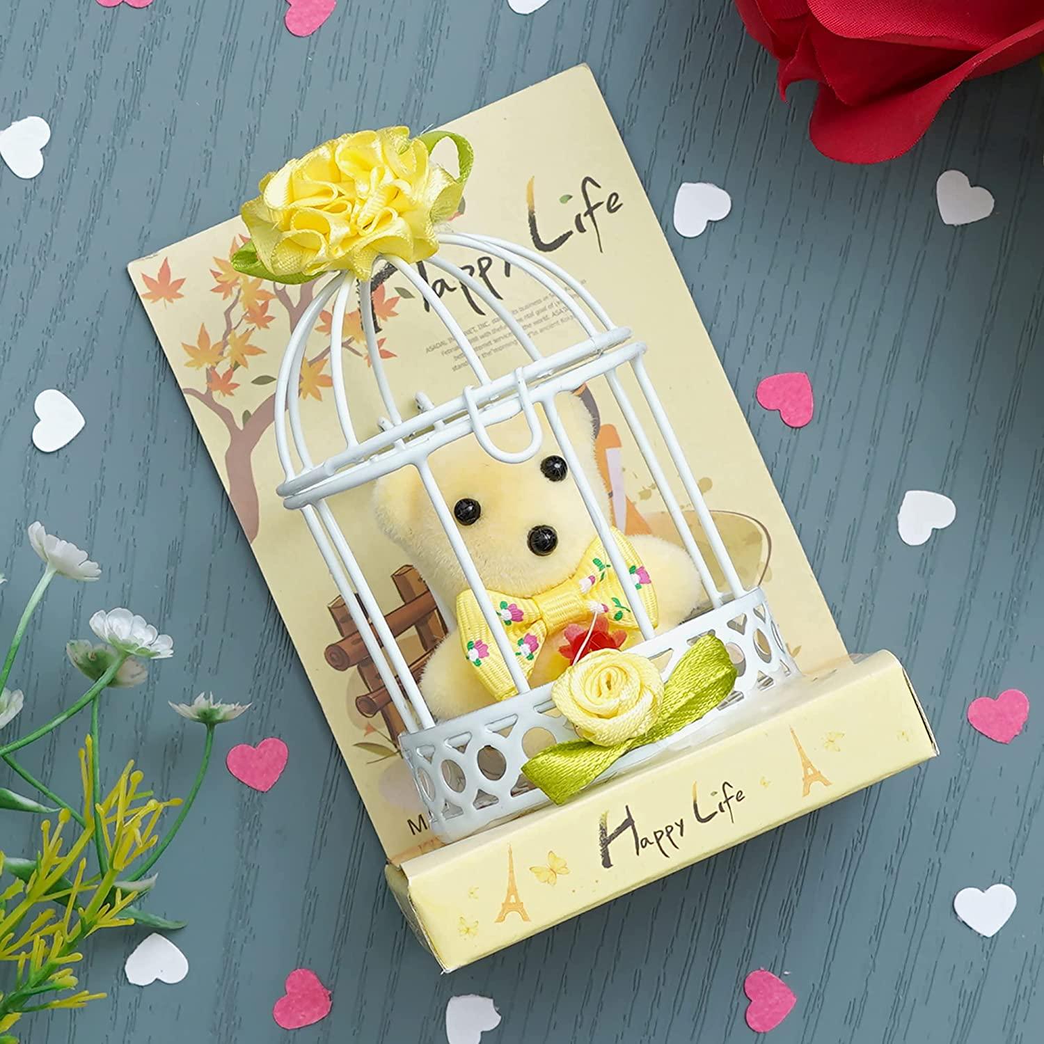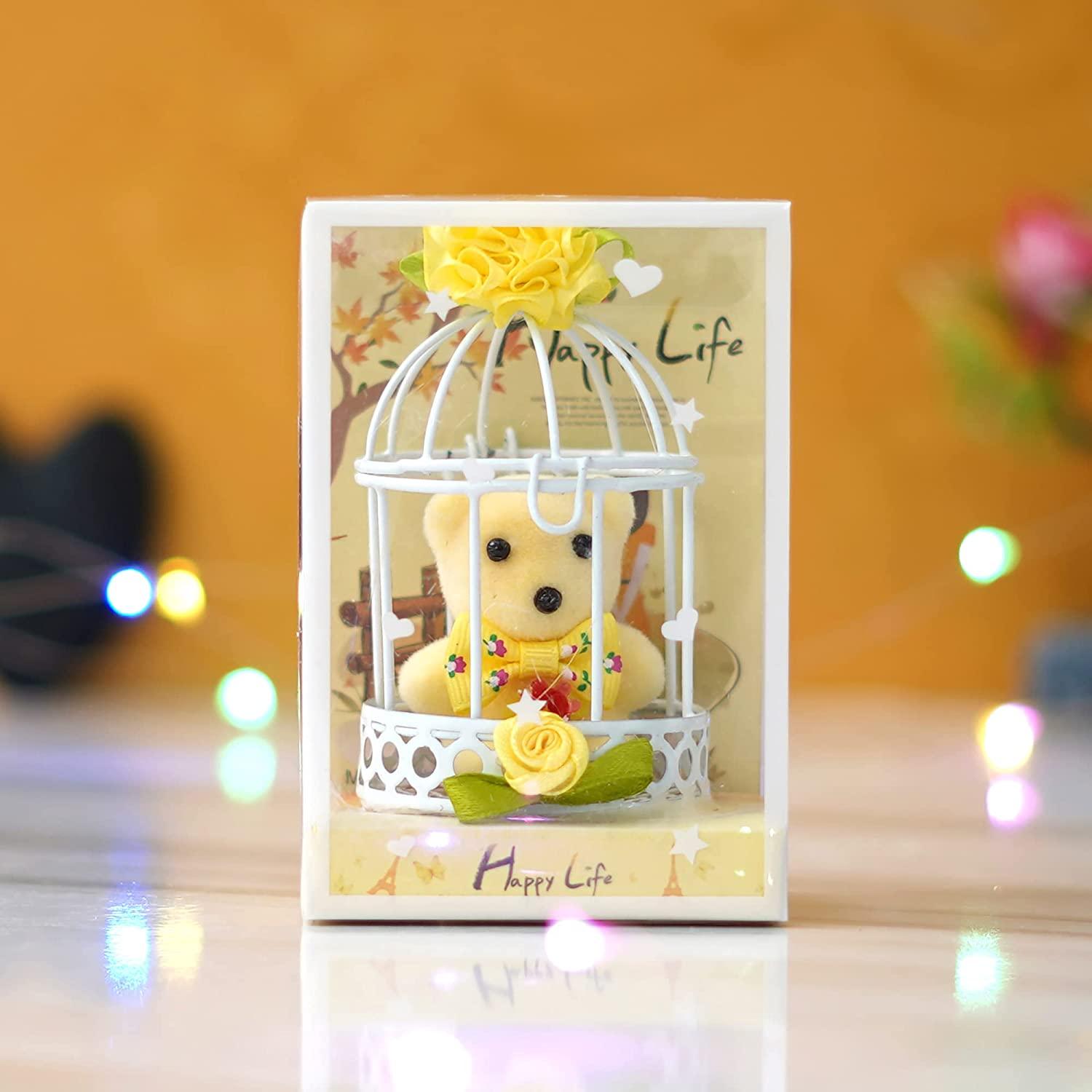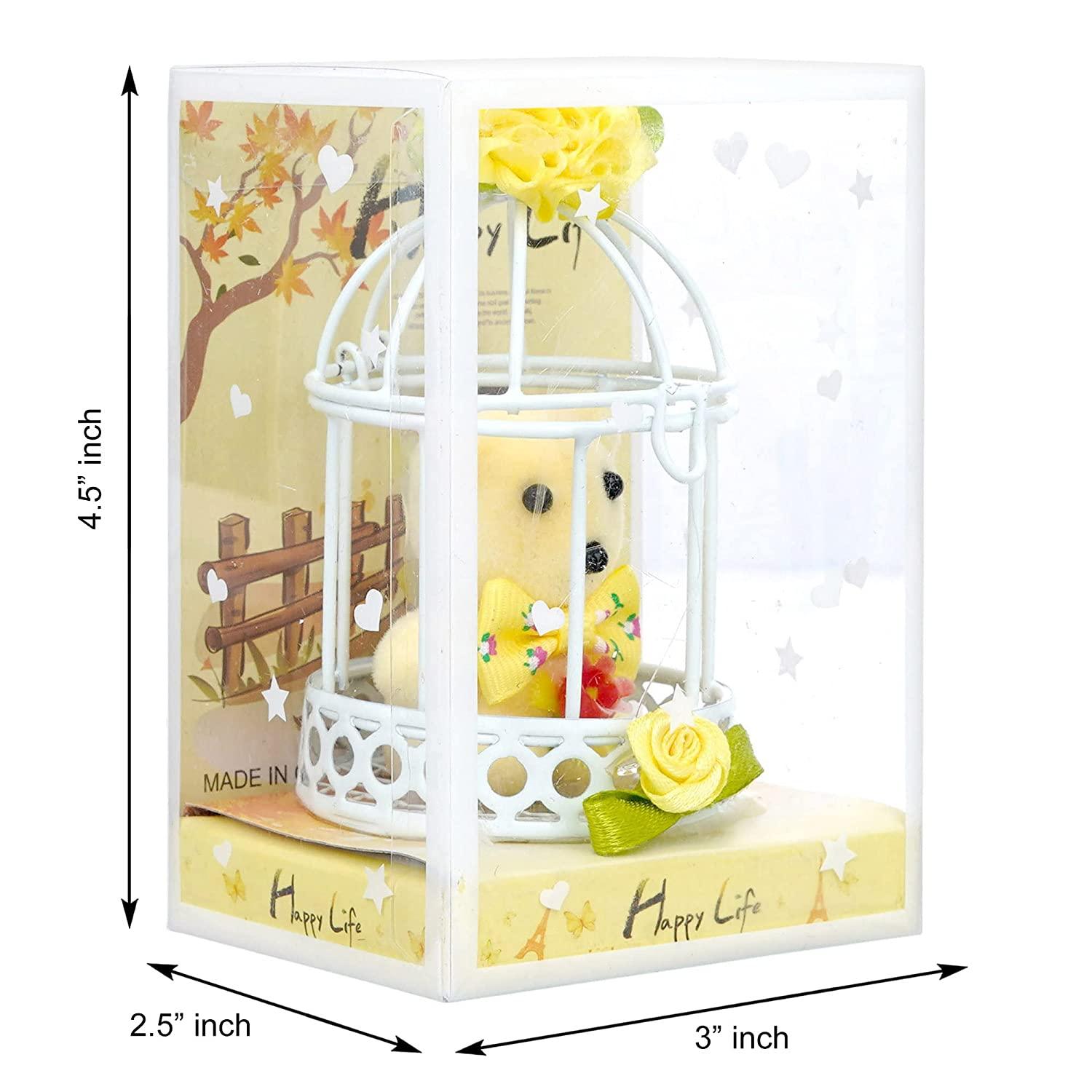 Webelkart®️ Premium Cute Little Teddy Sitting in Plastic Cage Showpiece for Her / Girlfriend / Wife / Fiancee / Valentines Day ( Yellow)