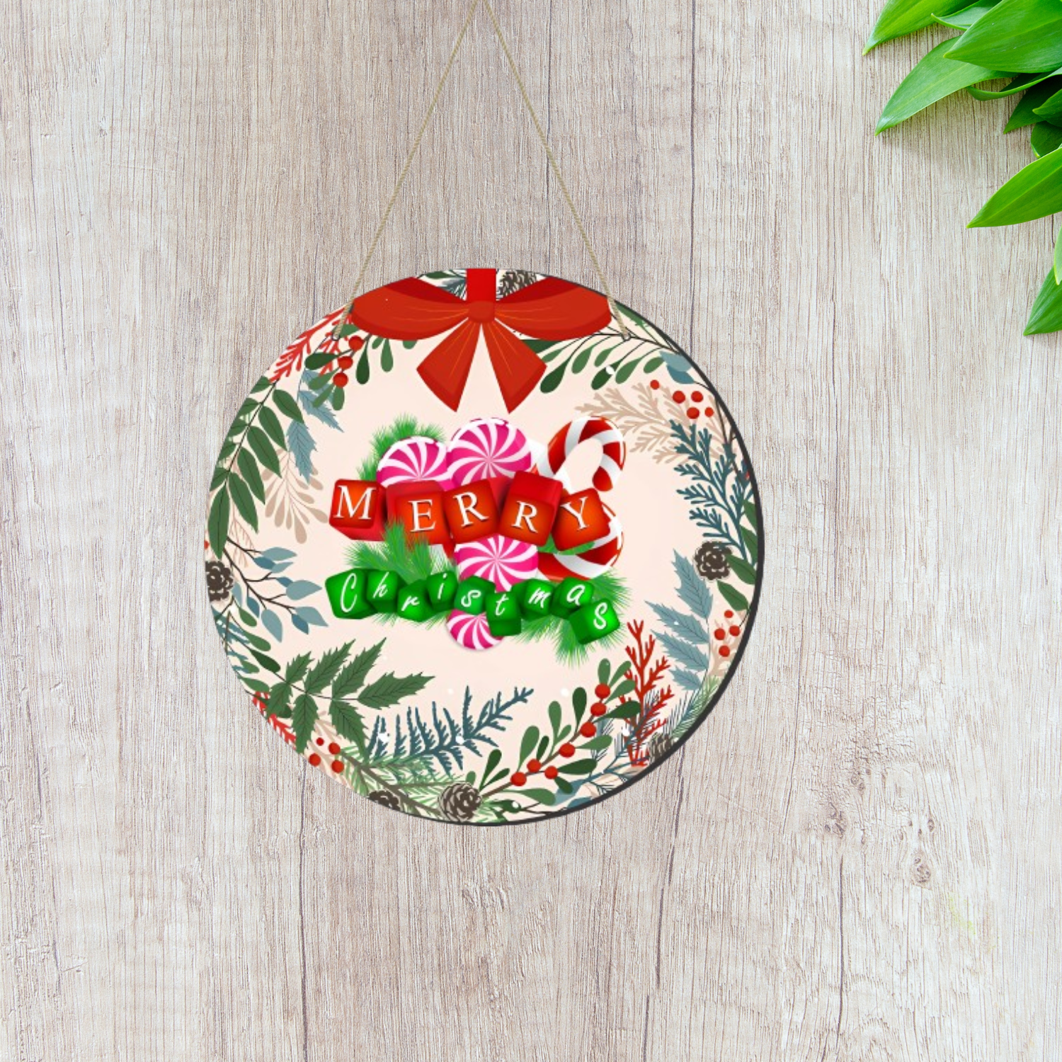 Webelkart Round Merry Christmas Wall Hanging for Christmas Decorations, Door Hanging for Home - Santa with Gifts Christmas Items