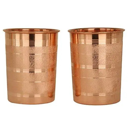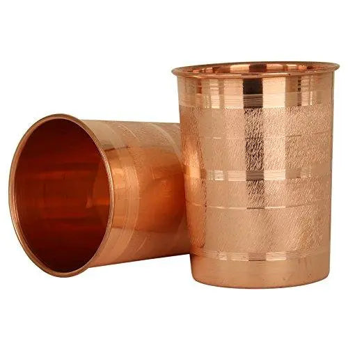 JaipurCrafts Copper Glass Tumbler, Serveware & Tableware, Ayurveda Yoga, 300 ML Each, Set of 2