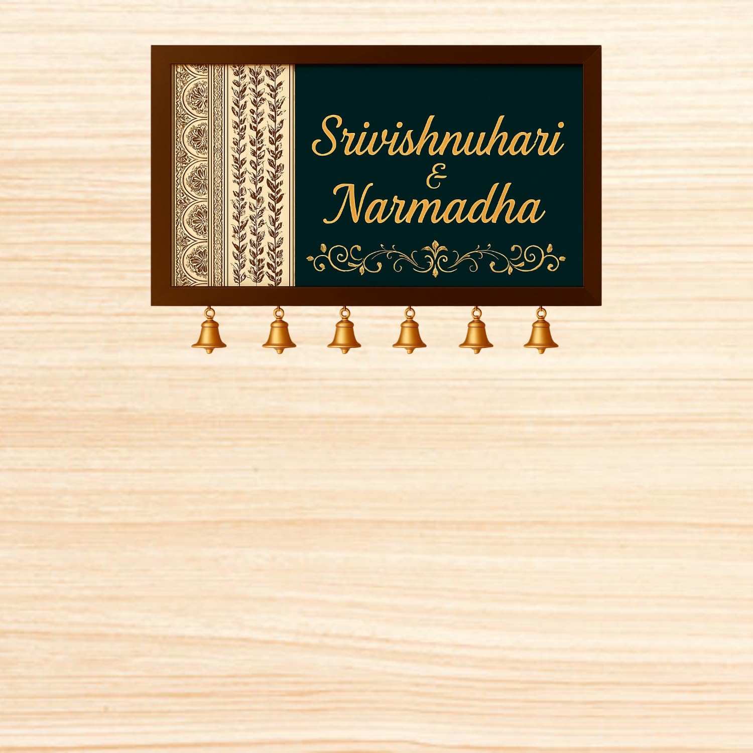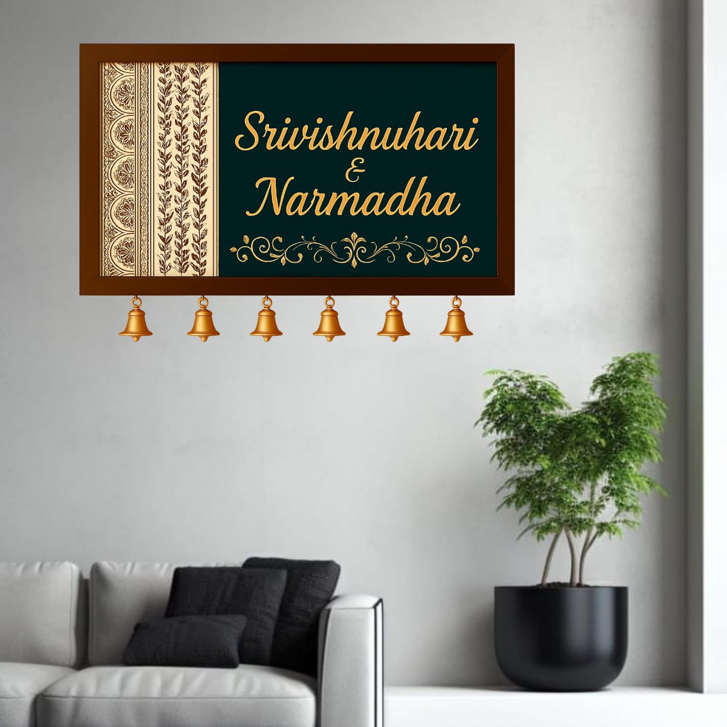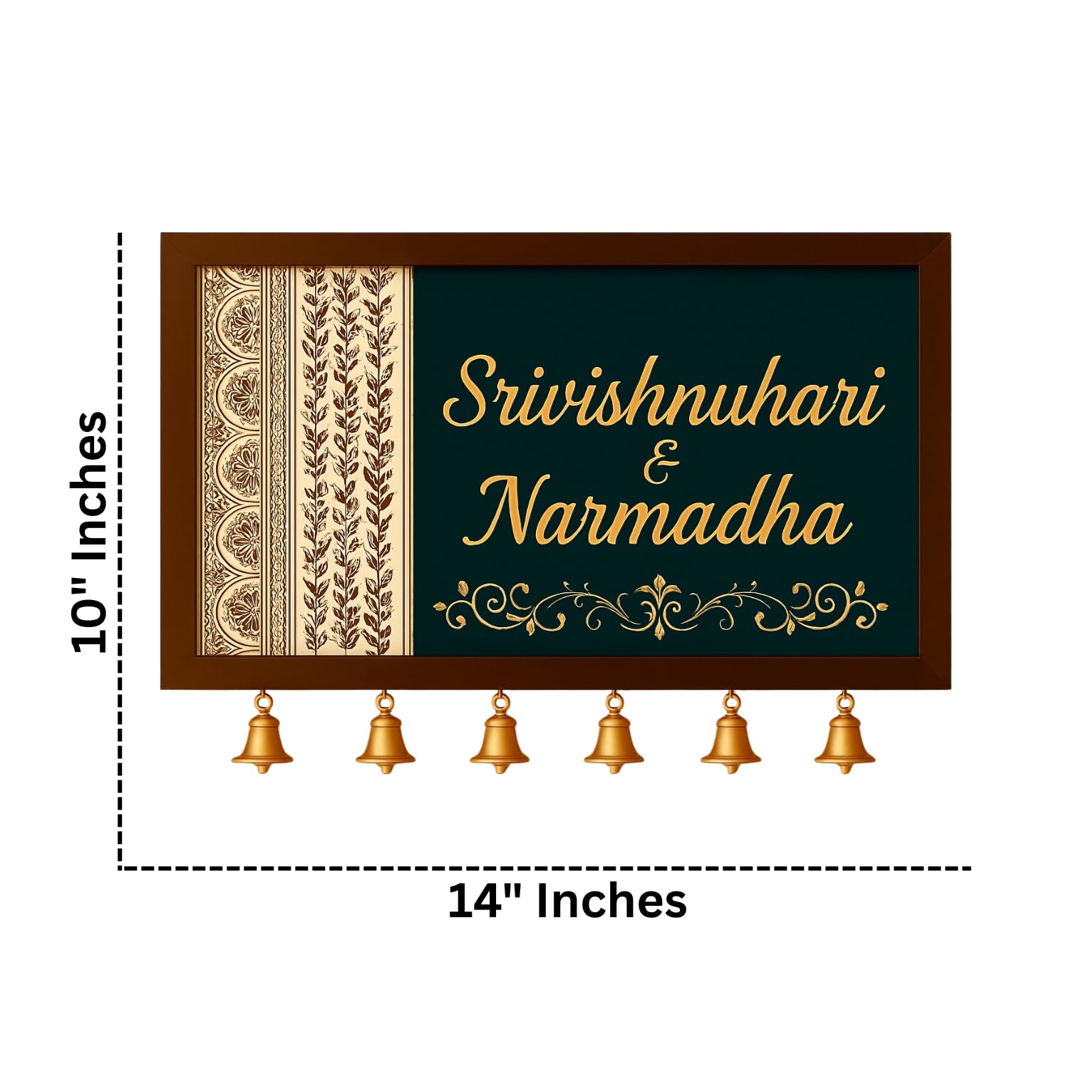 Webelkart Wooden Customised House Name Plate With Golden Bell For Home Entrance Outdoor - Door name plates | Name Plate Office Entrance (14 x 10 inches)