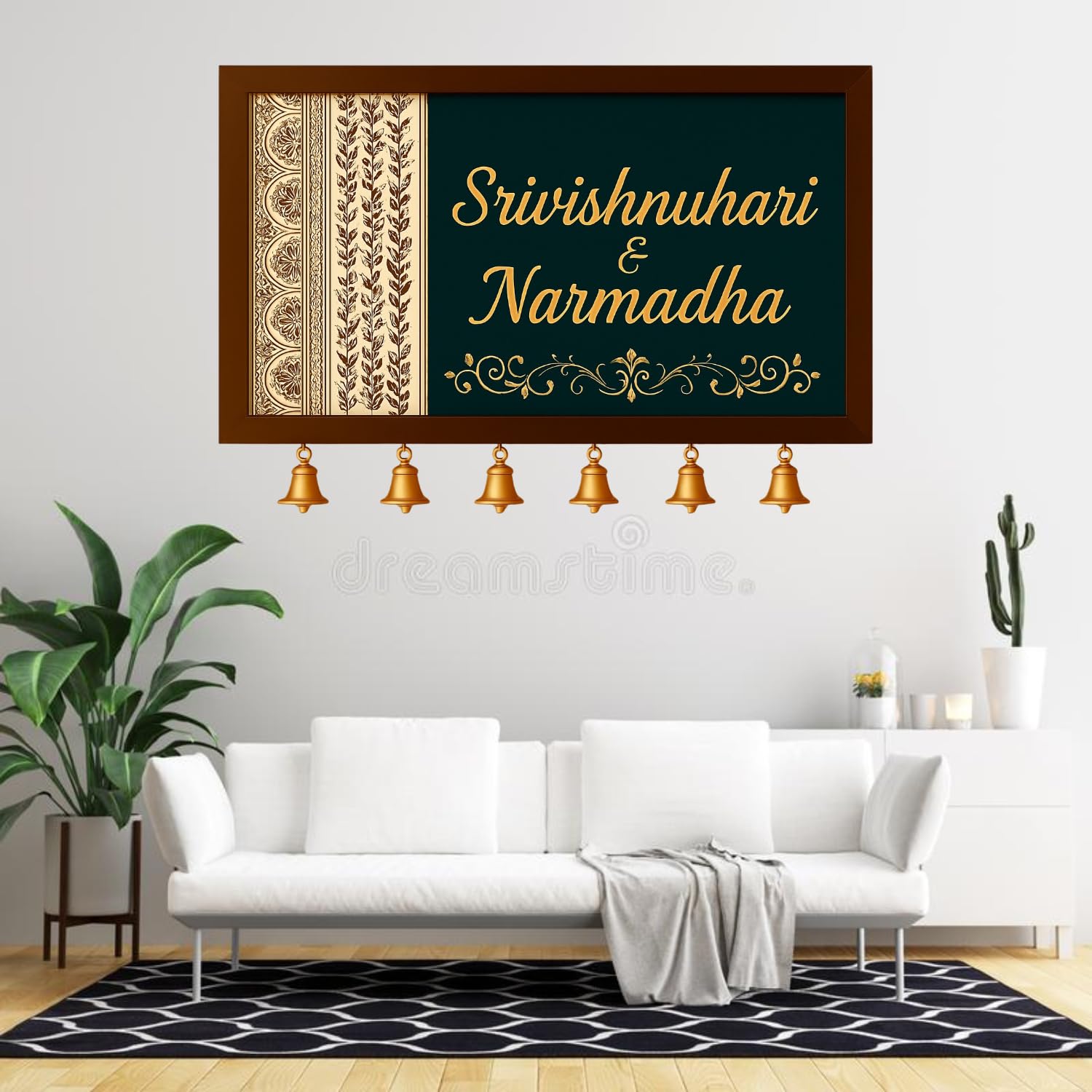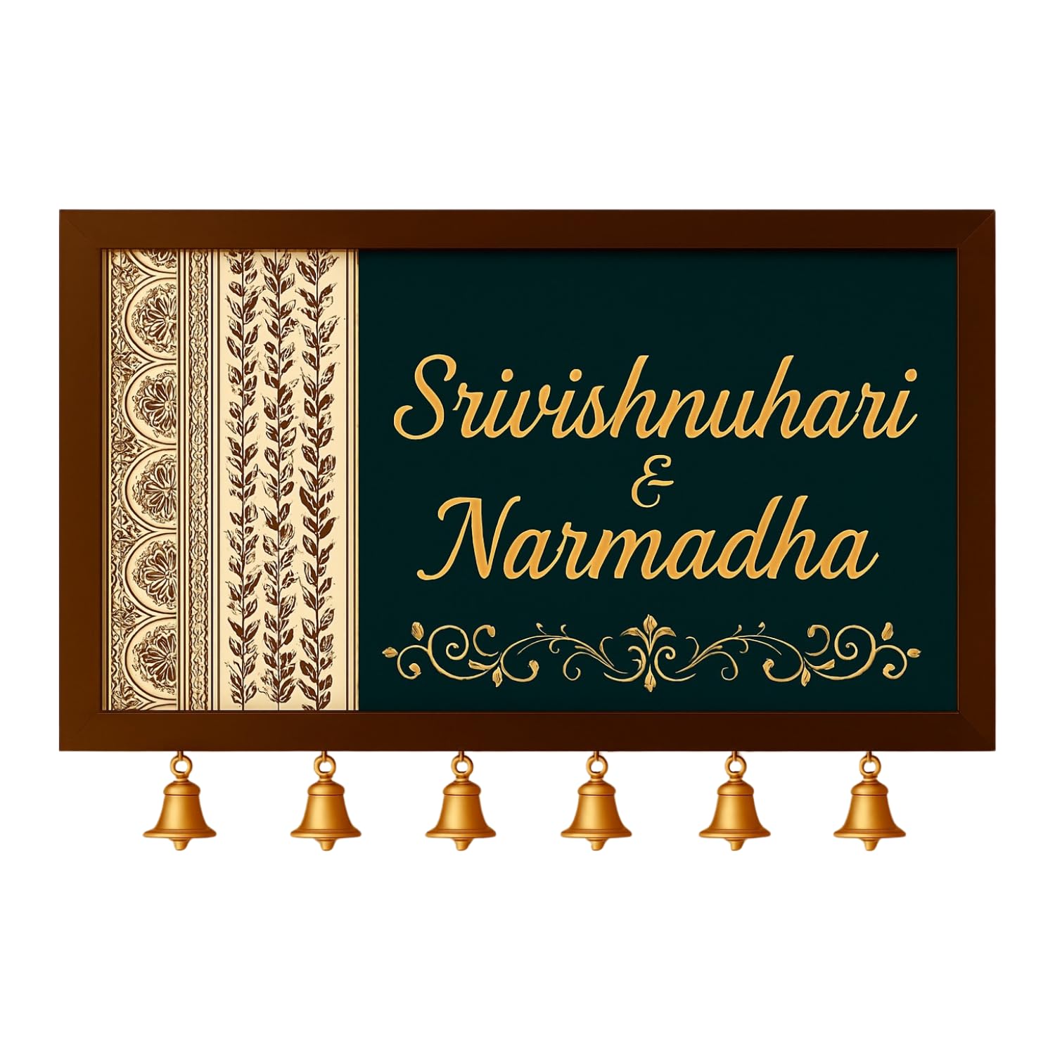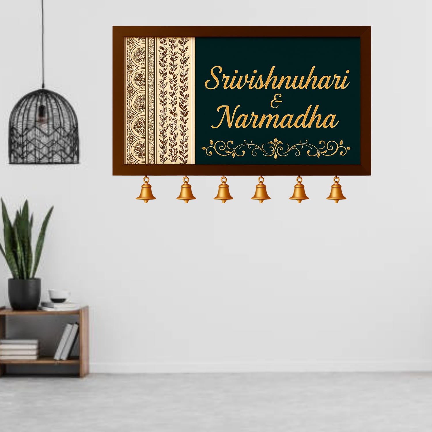 Webelkart Wooden Customised House Name Plate With Golden Bell For Home Entrance Outdoor - Door name plates | Name Plate Office Entrance (14 x 10 inches)