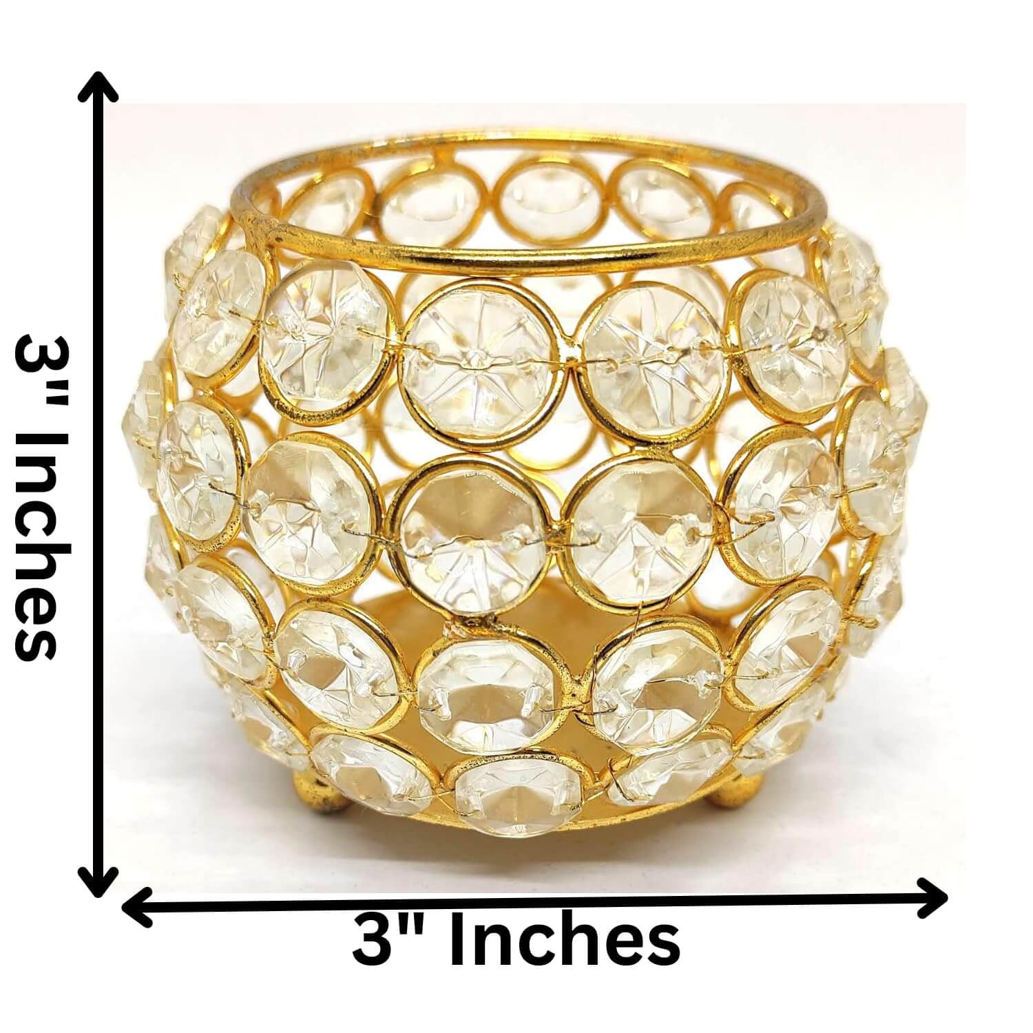 JaipurCrafts Premium Set of 2 Votives Bowl Crystal Tea Light Candle Holder for Diwali Decor |TeaLight Candle Holders for Home Decor Diwali Gift Item (3" Inches Set of 2 Gold)