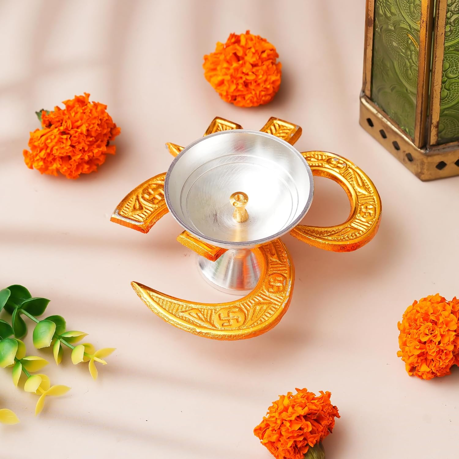 - PERFECTLY SIZED: Measures 5" x 4.33" Inches Metal Gold akhand Diya Oil Lamp