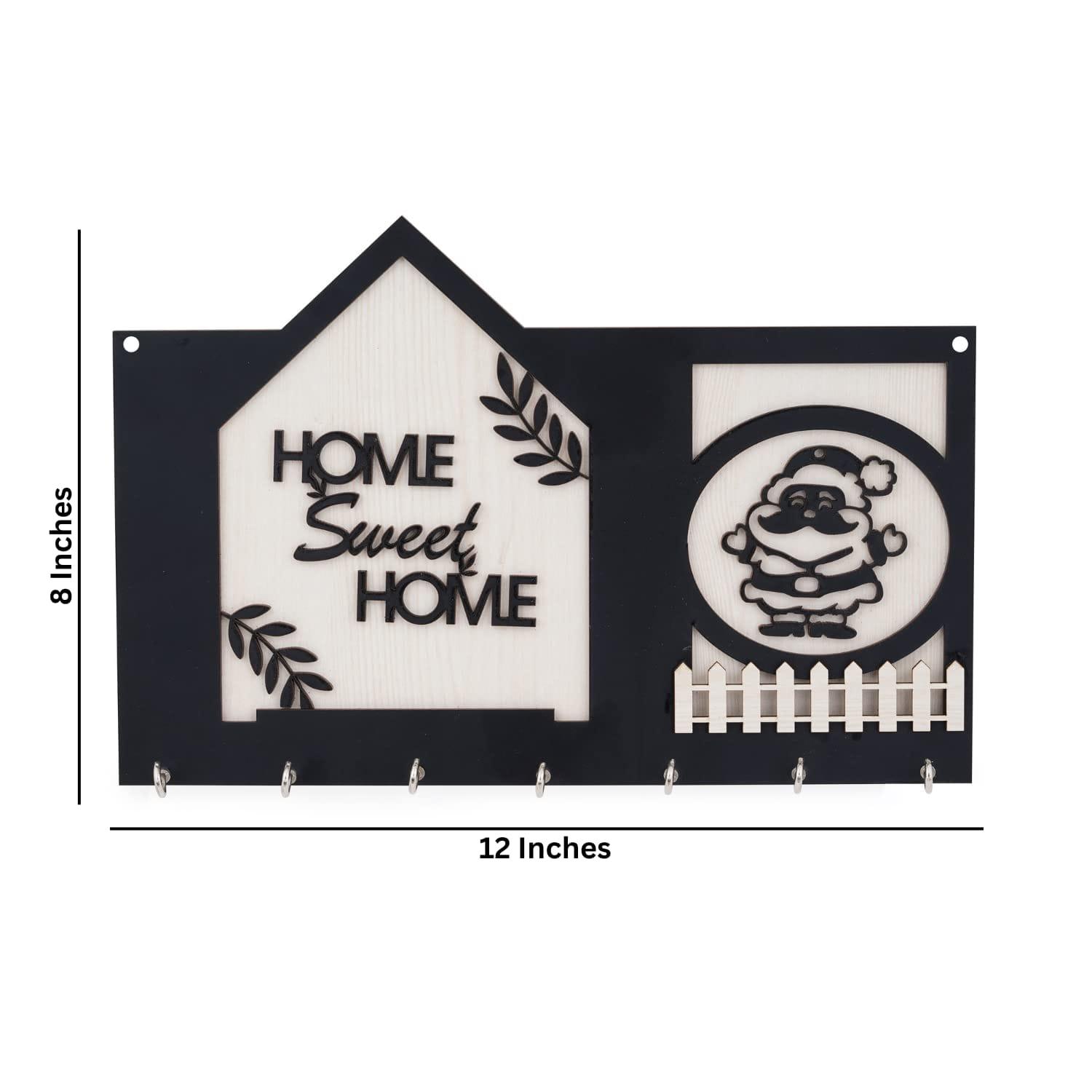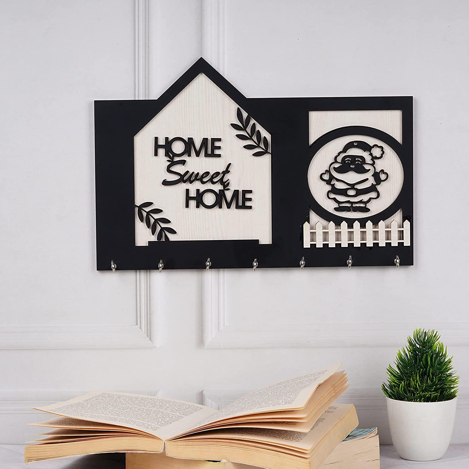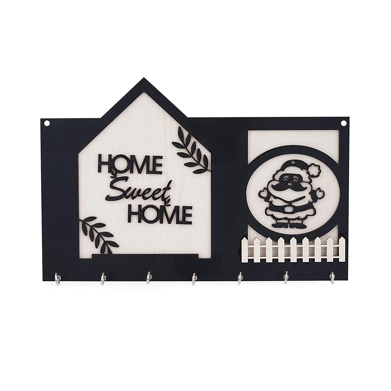 Webelkart Premium Home Sweet Home with Santa Claus Wood Key Holder for Home,Christmas Decoration and Gift Items for Home Decor ( 12 x 8, 7 Hooks)