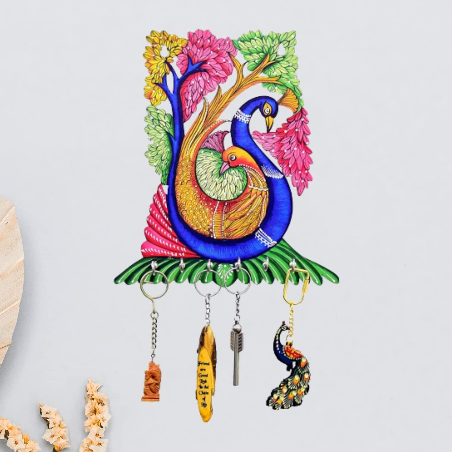 Webelkart Premium "Peacock Family" Printed Wooden Key Holder for and Office Decor