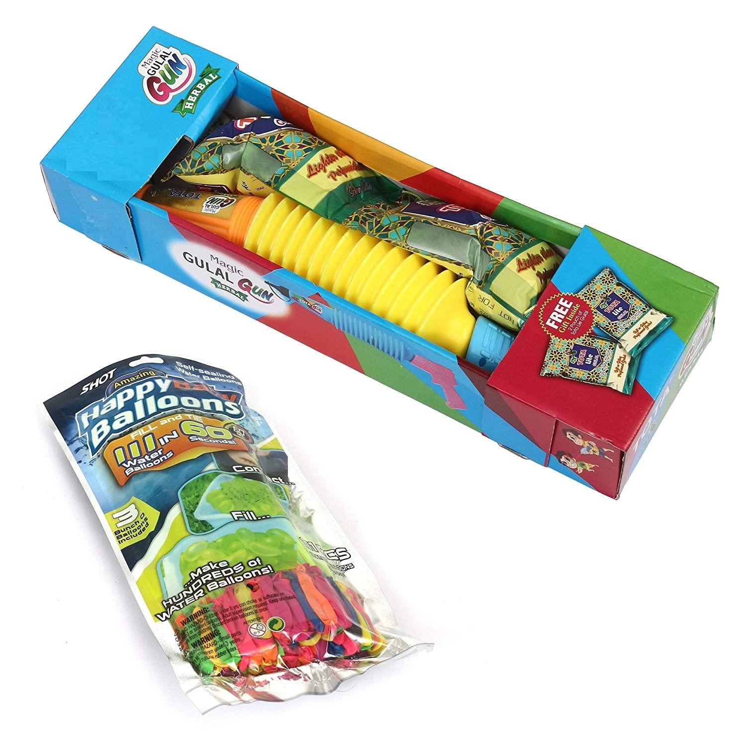 Webelkart Tota Combo of Organic Holi Colour Powder, Gulal Gun and 111 pcs Magic Balloon