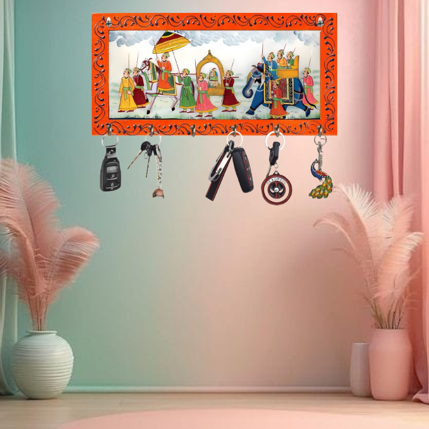 JaipurCrafts Antique HD UV Print Rajasthani Wooden Key Hanger for Home/Office Decor-Wall Decorative Key Holder,Home Decor Item (12x6 Inches)