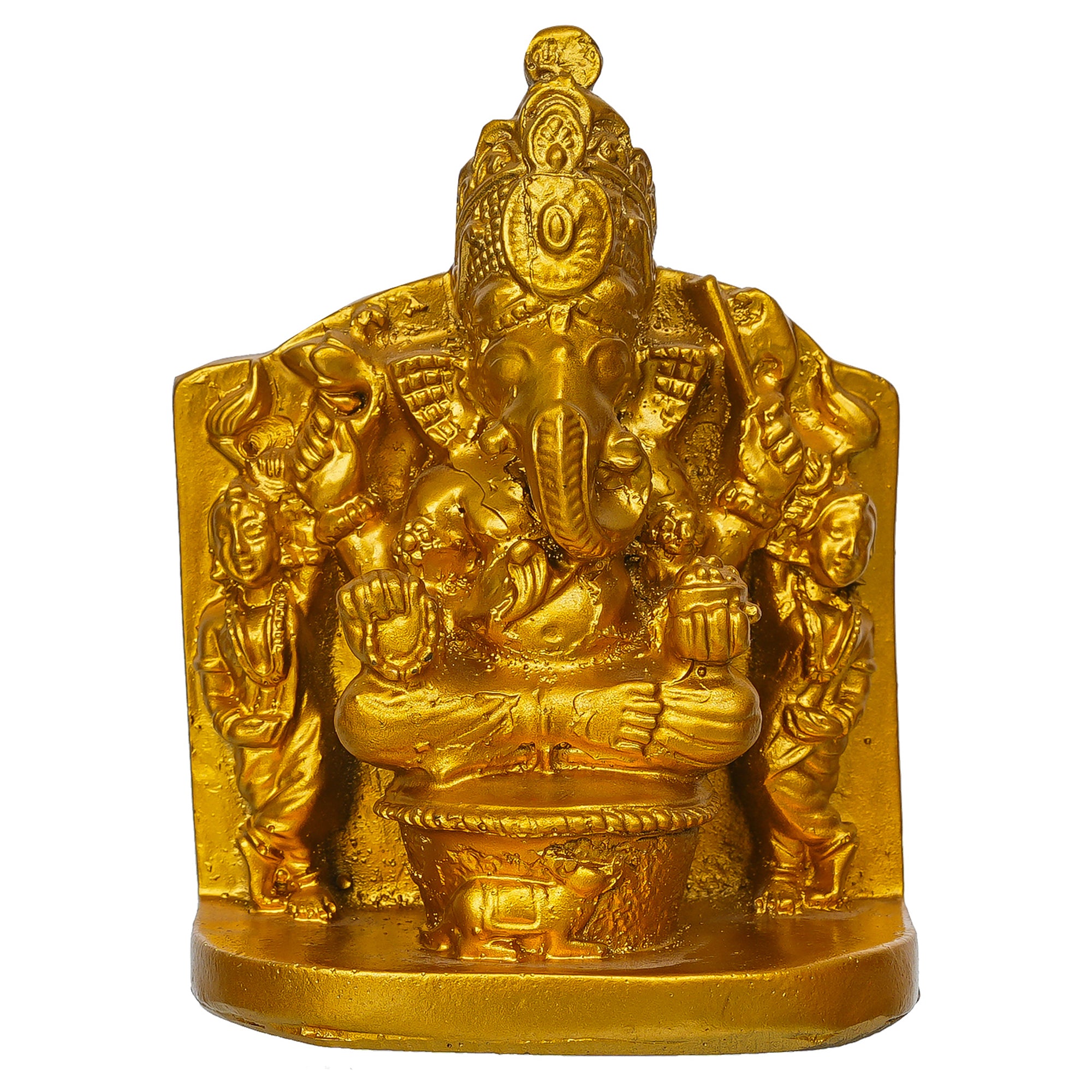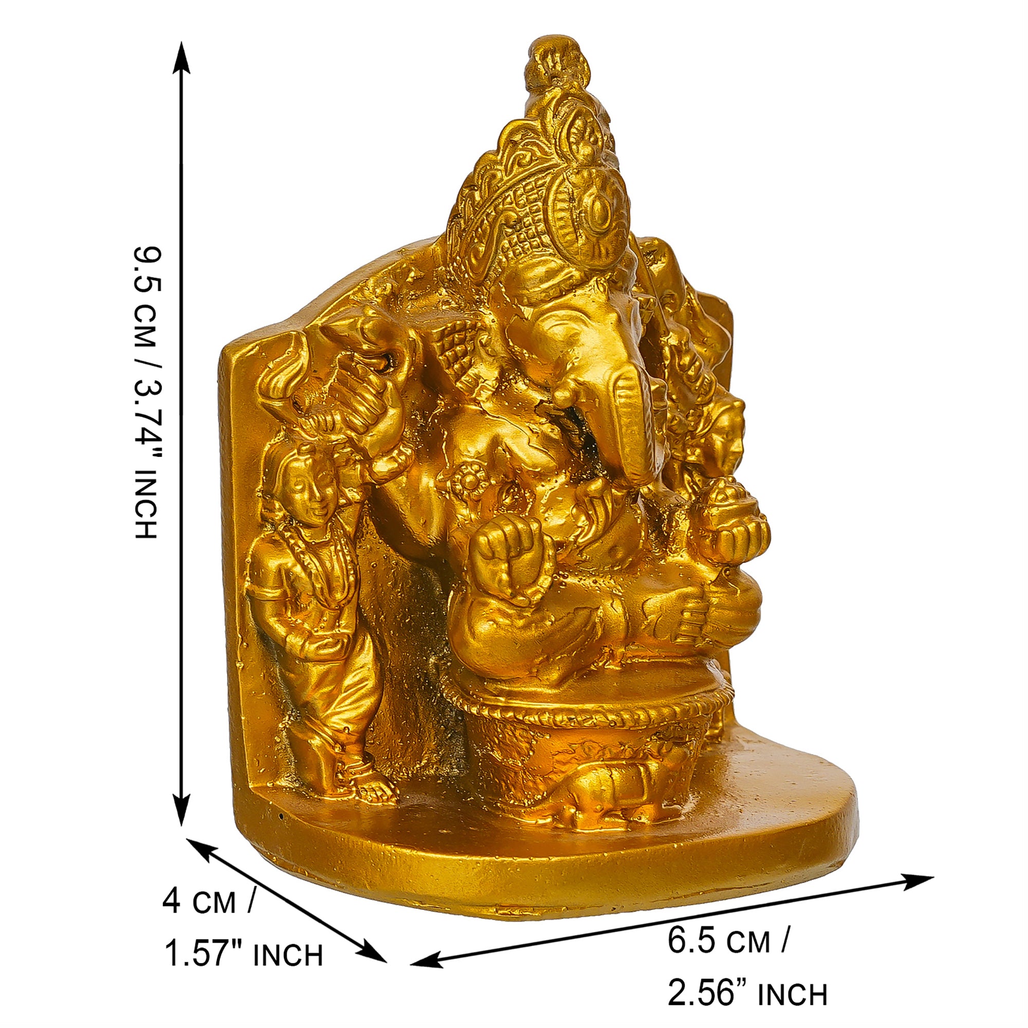 Webelkart Premium Golden Lord Ganesha Idol with Arch | Resin Ganpati Murti for Pooja & Vastu | Spiritual Home & Office Decor | Tabletop Showpiece (4" inches)