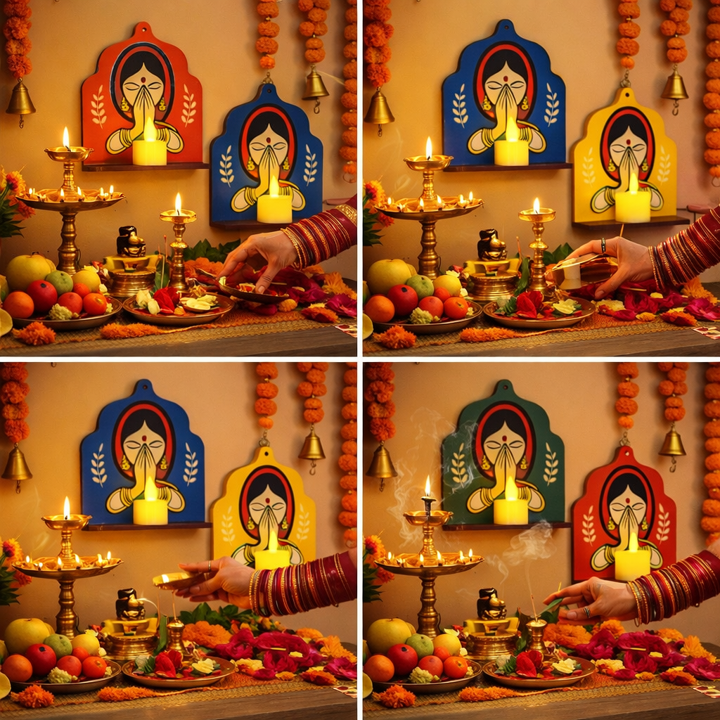 - Functional Wall Decor: Each piece serves as both decorative wall art and a practical shelf with a holder for tea light candles or diyas, ideal for Diwali celebrations and festive occasions