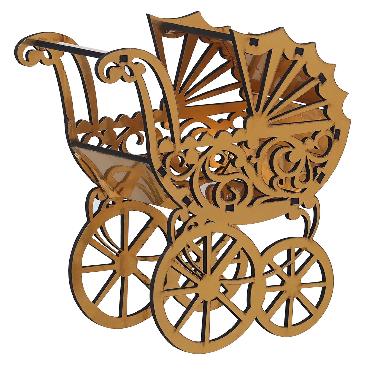 JaipurCrafts Mini Stroller, Baby Stroller, Doll Stroller Laser Cut Showpiece Home and Office Decor Handmade Wooden Gift for Kids