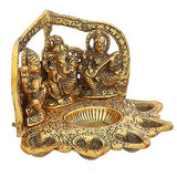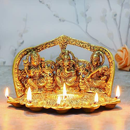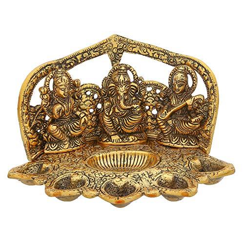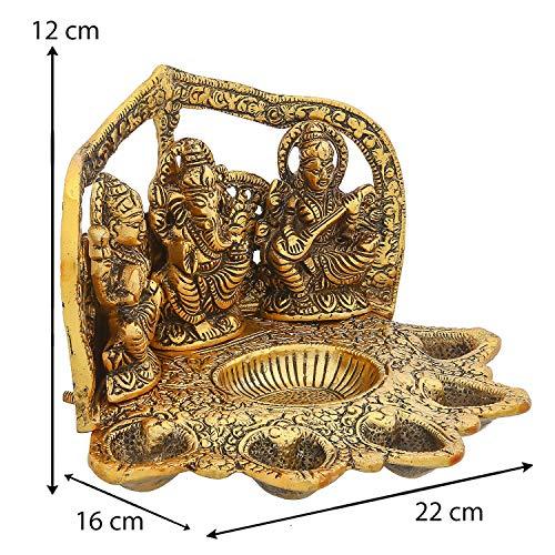 JaipurCrafts Aluminum Laxmi Ganesh Saraswati Idol Oil Lamp Diya with 5 Division (Golden)