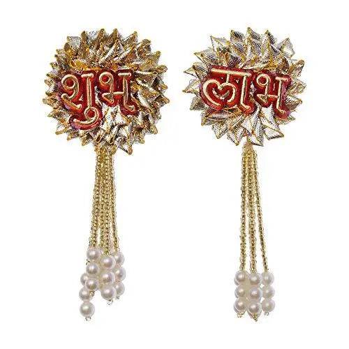 - This Hand Made Designer shubh laabh Gives Charm To Your Guests When You Place At The Entrance Of Your Sweet Home During Festivals. This shubh laabh is Crafted With Perfection. If a stone comes off, it can be Fixed using acrylic or plastic glue.