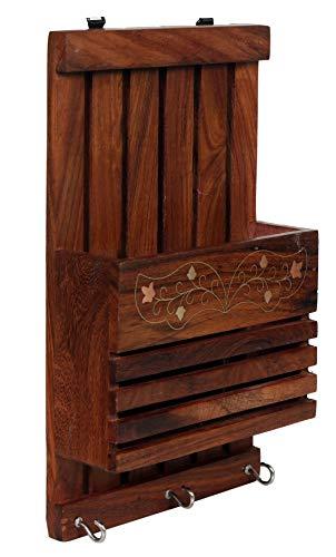• [ABOUT PRODUCT] - Material : Wood , Size (L x H): 10 X 6 Inch Approx , Color : Brown , No. of Hooks : 3