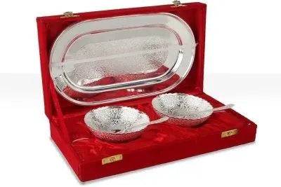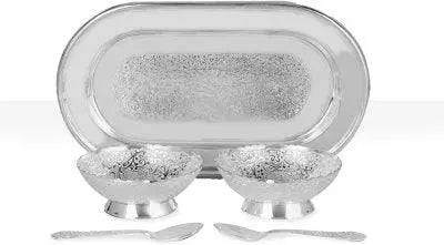 JaipurCrafts Designer Brass Decorative Platter (Silver) -Pack of 5