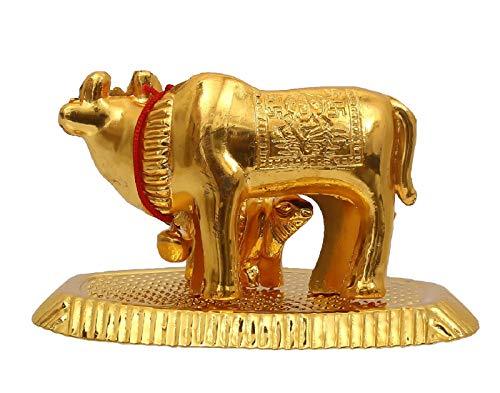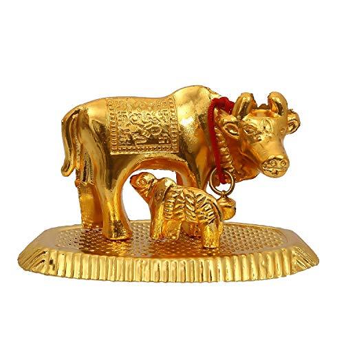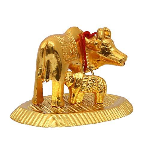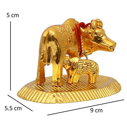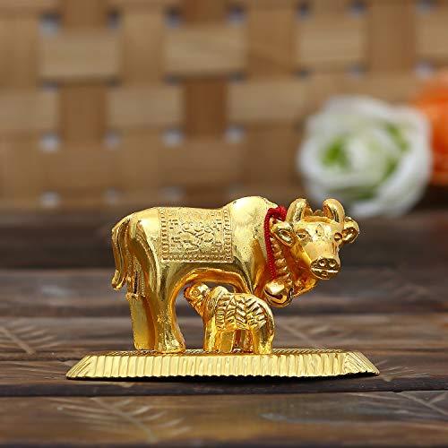 JaipurCrafts Gold Small Kamdhenu Cow and Calf Showpiece - 5.5 cm (Aluminium)