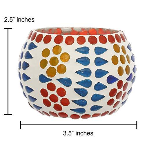 Details: JaipurCrafts tealight candle holder work as a tealight holder/candle holder and can even be used in dining rooms and halls for the decoration purpose and parties etc. Also It can be used as a unique gift too and the best and amazing thing about the product is that it shines like a diamond whenever a tealight is burned inside. Tealight holder made of glass and beautiful cover with mosaic hand work to help lighting the candles for longer time and in attractive way. Brighten up the ambiance of your living space with this tealight holder. This tealight holder will add charm to your home. It is handcrafted, colorful stained glass create the mosaic like effect.