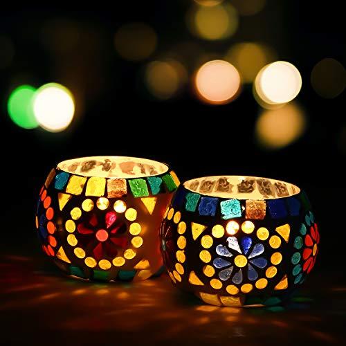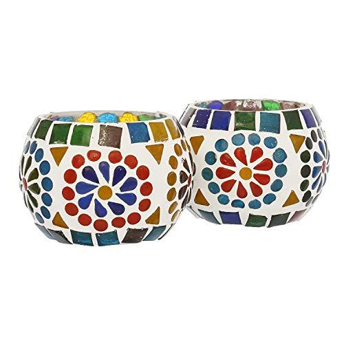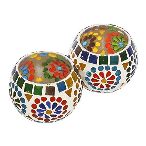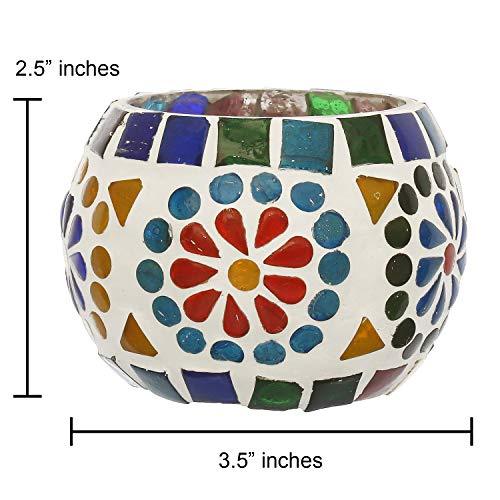Details: JaipurCrafts tealight candle holder work as a tealight holder/candle holder and can even be used in dining rooms and halls for the decoration purpose and parties etc. Also It can be used as a unique gift too and the best and amazing thing about the product is that it shines like a diamond whenever a tealight is burned inside. Tealight holder made of glass and beautiful cover with mosaic hand work to help lighting the candles for longer time and in attractive way. Brighten up the ambiance of your living space with this tealight holder. This tealight holder will add charm to your home. It is handcrafted, colorful stained glass create the mosaic like effect.