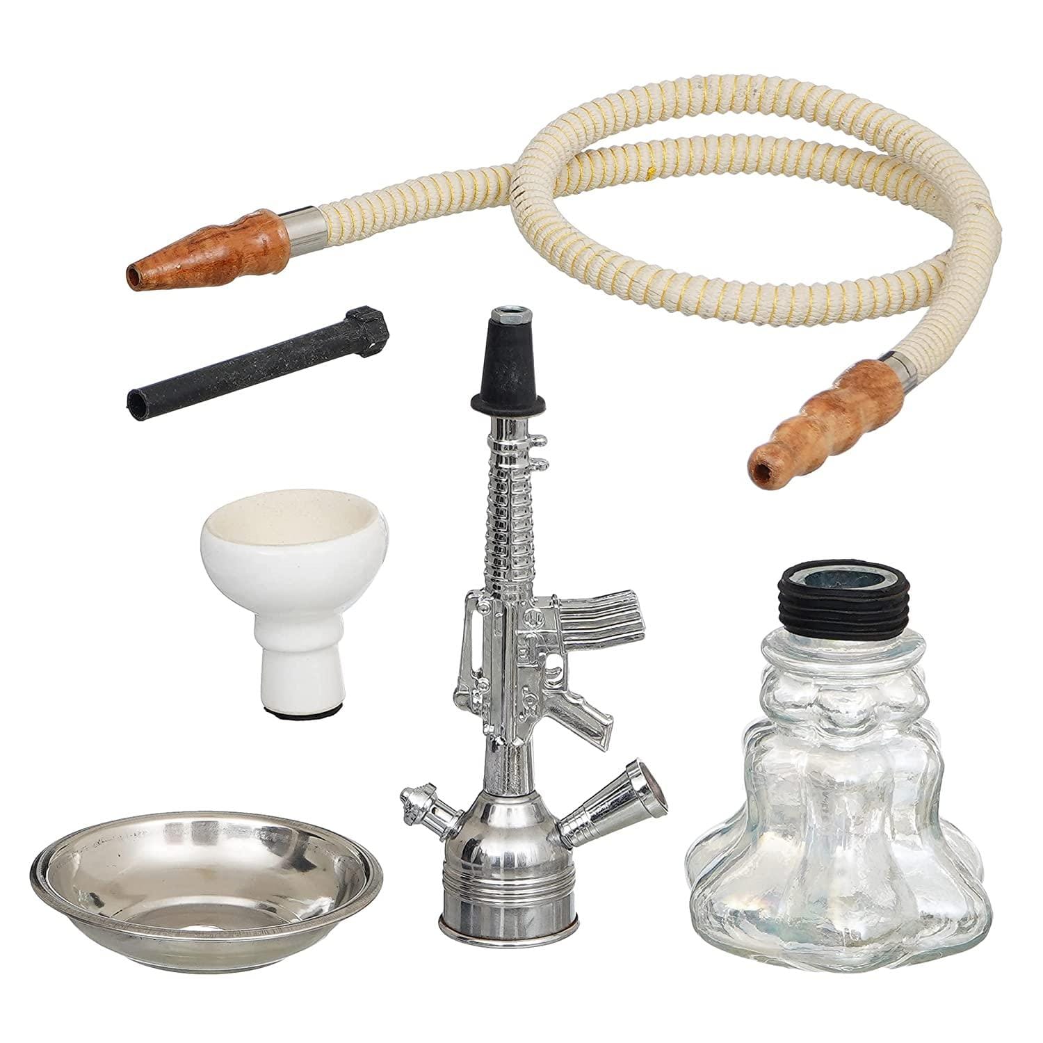JaipurCrafts Premium Designer Silver Gun Matki Hookah Set (15.50 Inch)