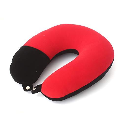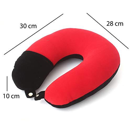 WebelKart U-Shaped Neck Pillow - 12" x 12" (Red and Black) Soft Foam Neck Travel Pillow for Car, Train, Flight, Bus