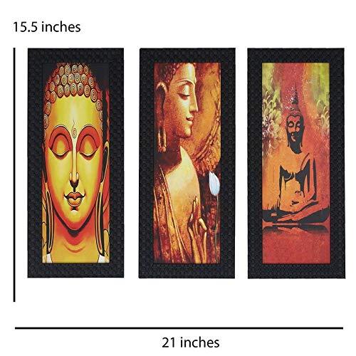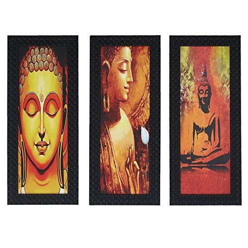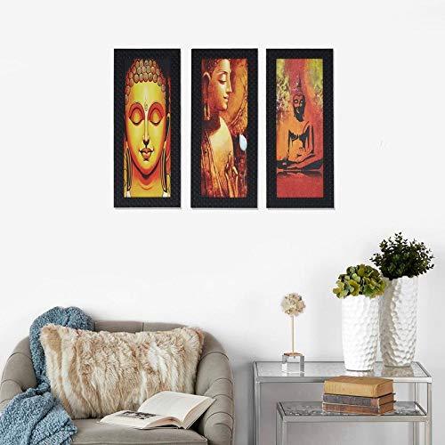 JaipurCrafts Gautam Buddha Set of 3 Large Framed UV Digital Reprint Painting (Wood, Synthetic, 41 cm x 53 cm)