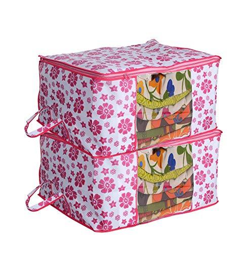 JaipurCrafts 3 Piece Underbed Storage Bag,Storage Organiser,Blanket Cover with Zippered Closure and Handle (Flower Print, 65 x 47 x 33 cm)- Extra Large