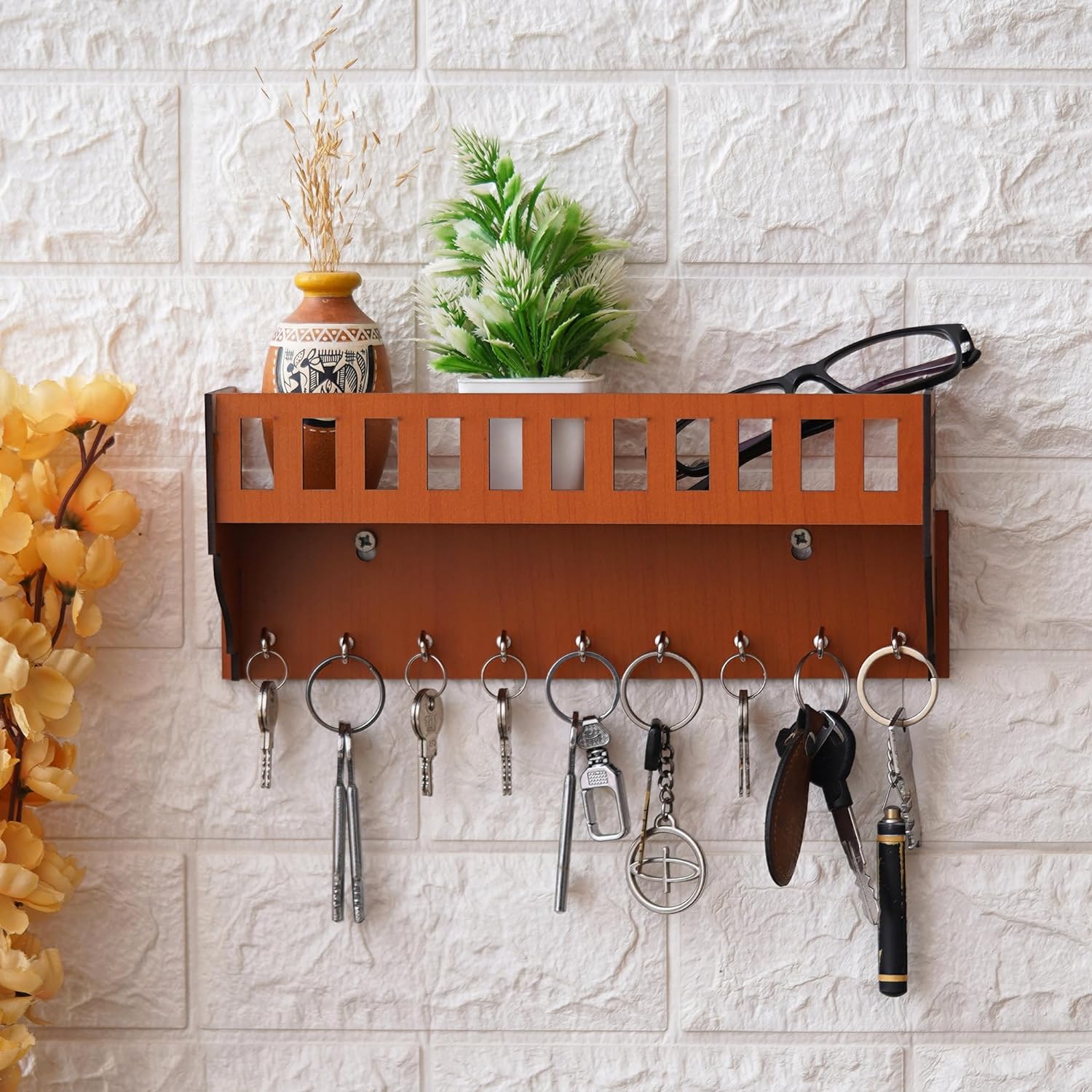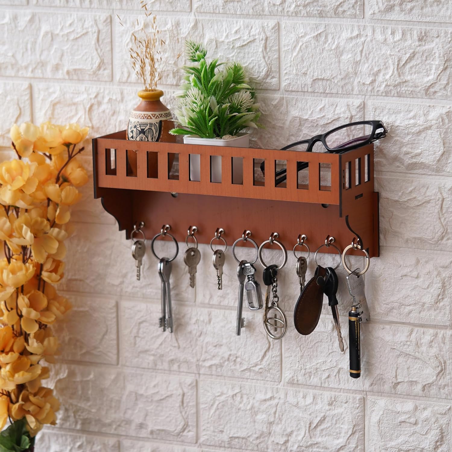 - This Decorative wooden key holder in a wood finish ideal to be placed in the entryway or any wall to hang in home to hang keys and other material. Multiple ways perfect space utilization for modern home.