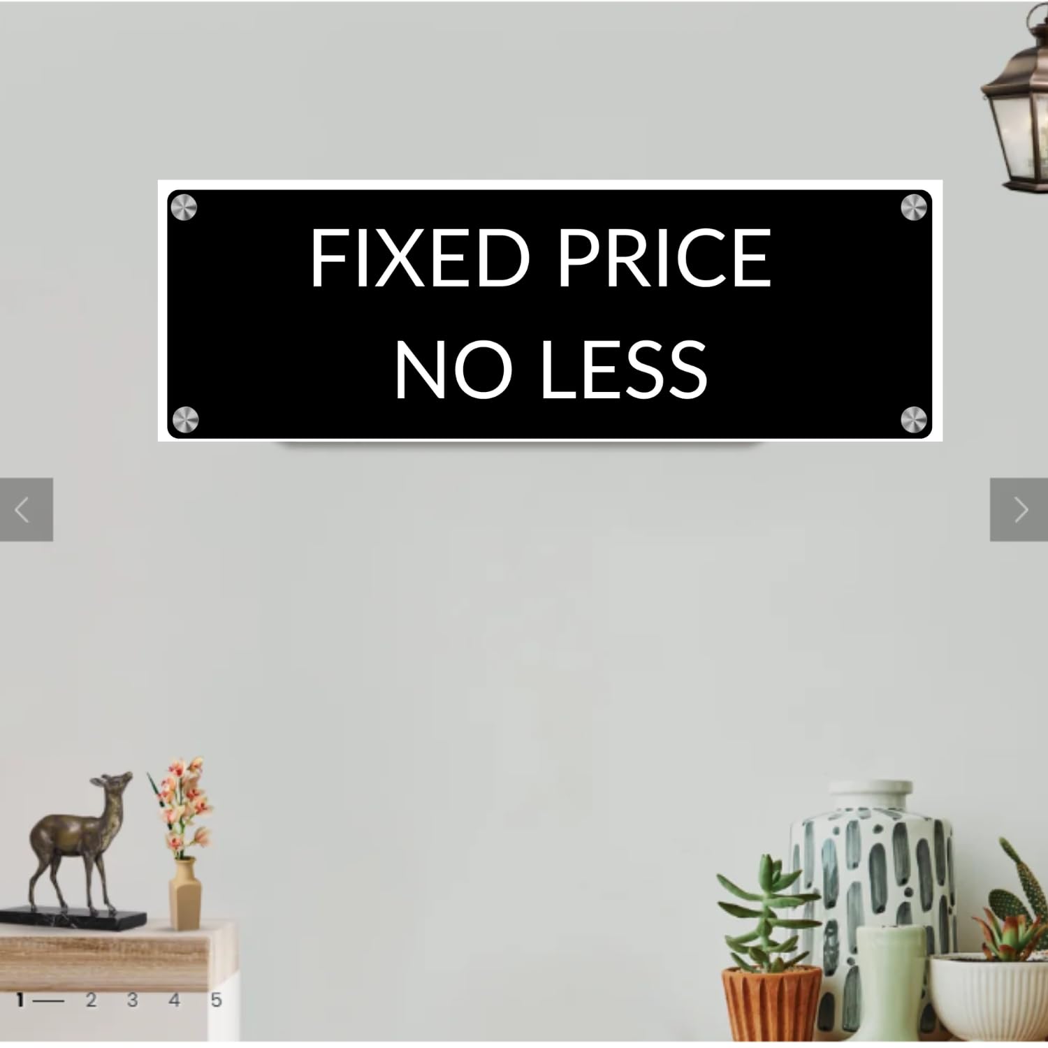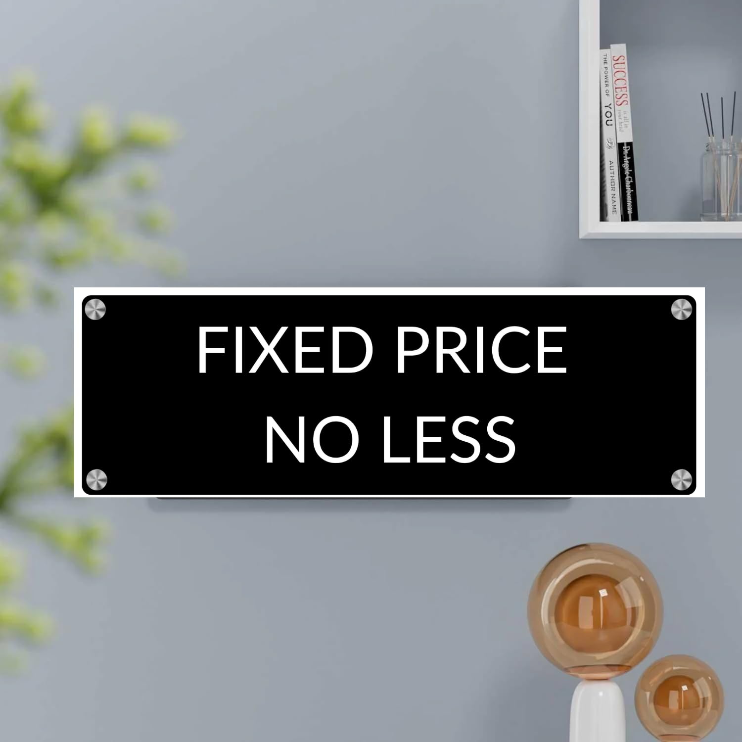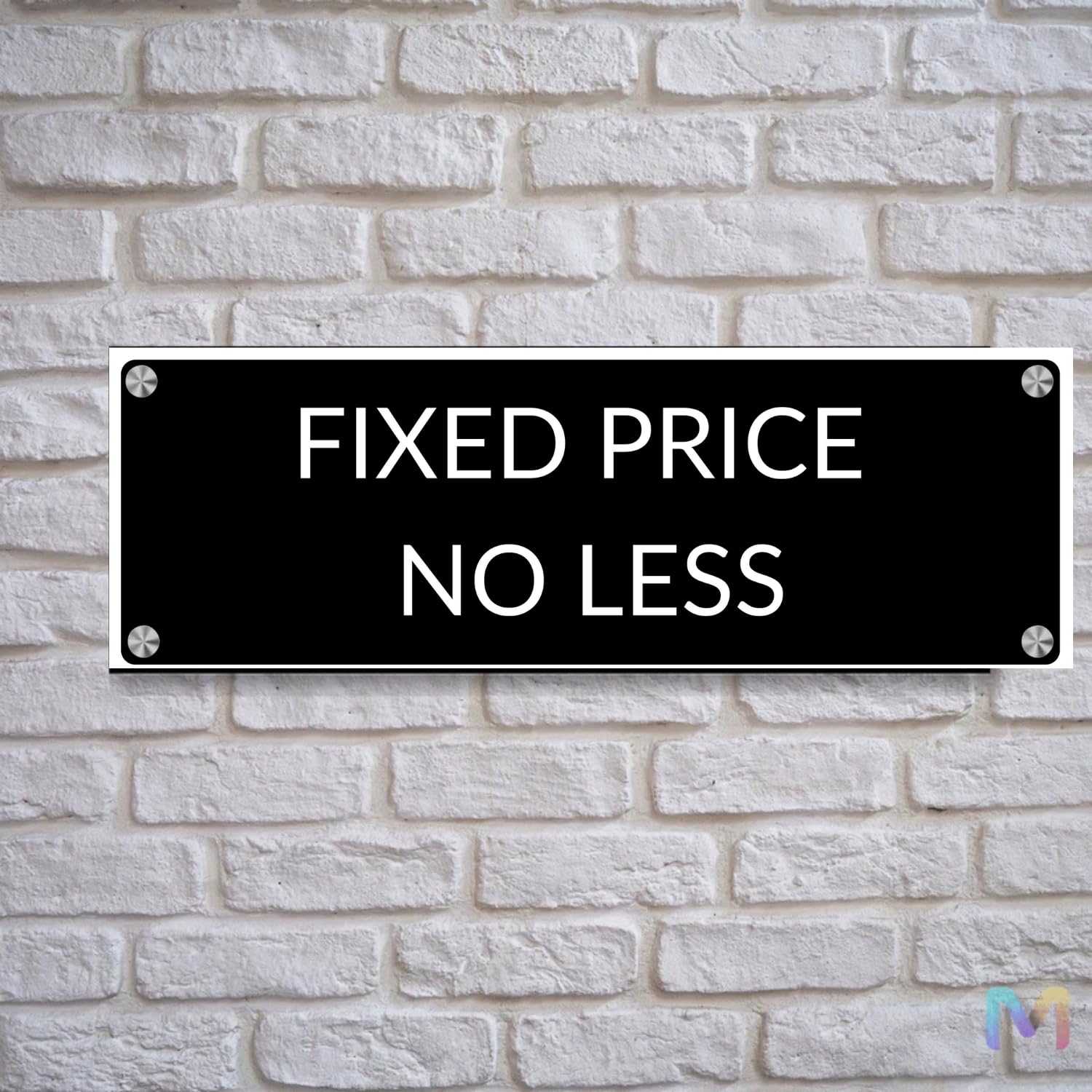 - DIMENSIONS: Premium acrylic FIXED PRICE NO LESS Shop Name Plate sign plate measuring 22.86 x 7.62 centimetres (9 x 3 inches), perfect for clear visibility in various settings
