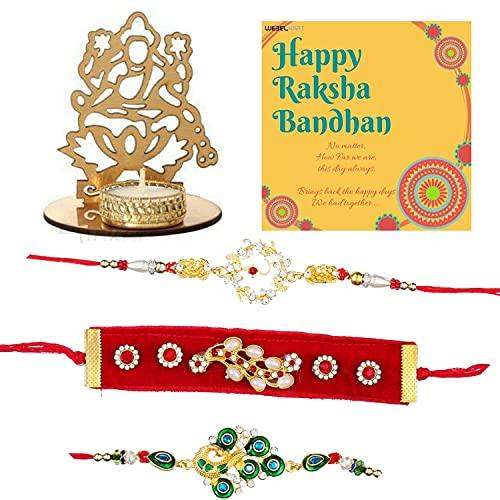 Webelkart Premium Combo of Rakhi Gift for Brother and Bhabhi and Kids with Premium Goddess Laxmi Shadow Tealight Holder