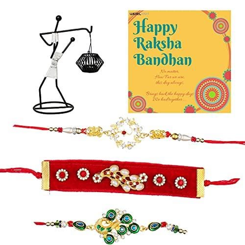 Webelkart Premium Combo of Rakhi Gift for Brother and Bhabhi and Kids with Premium Iron Human Tealight Holder