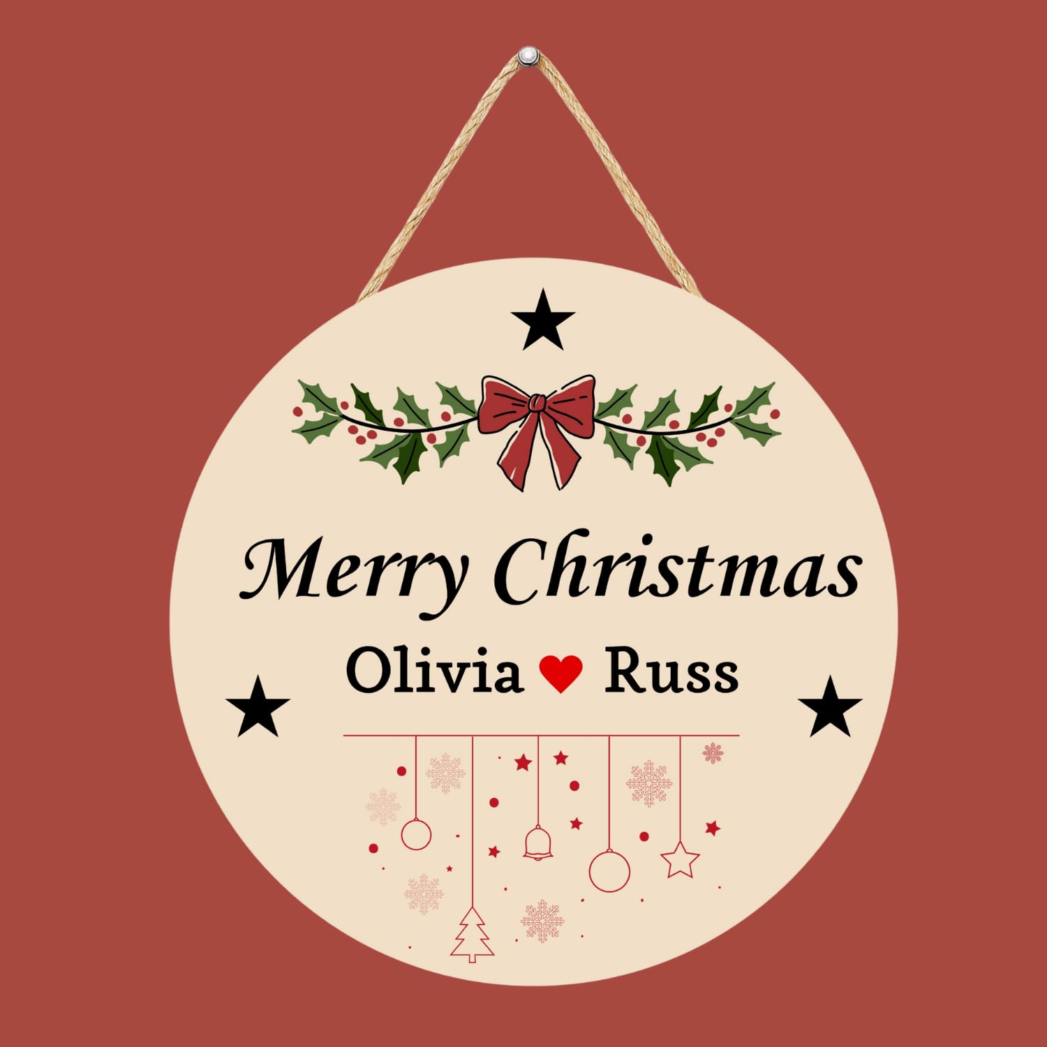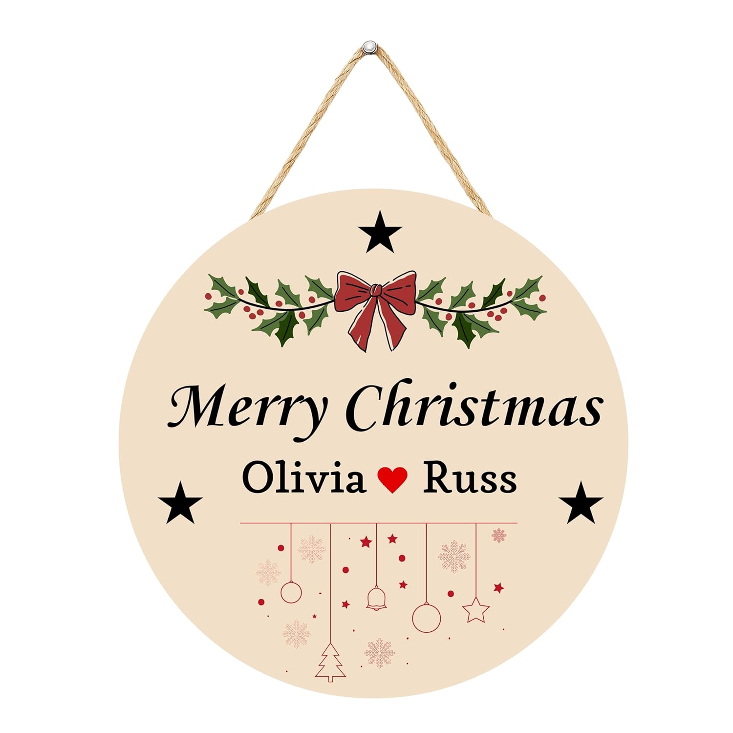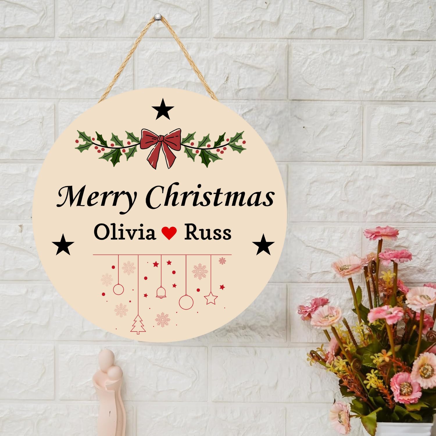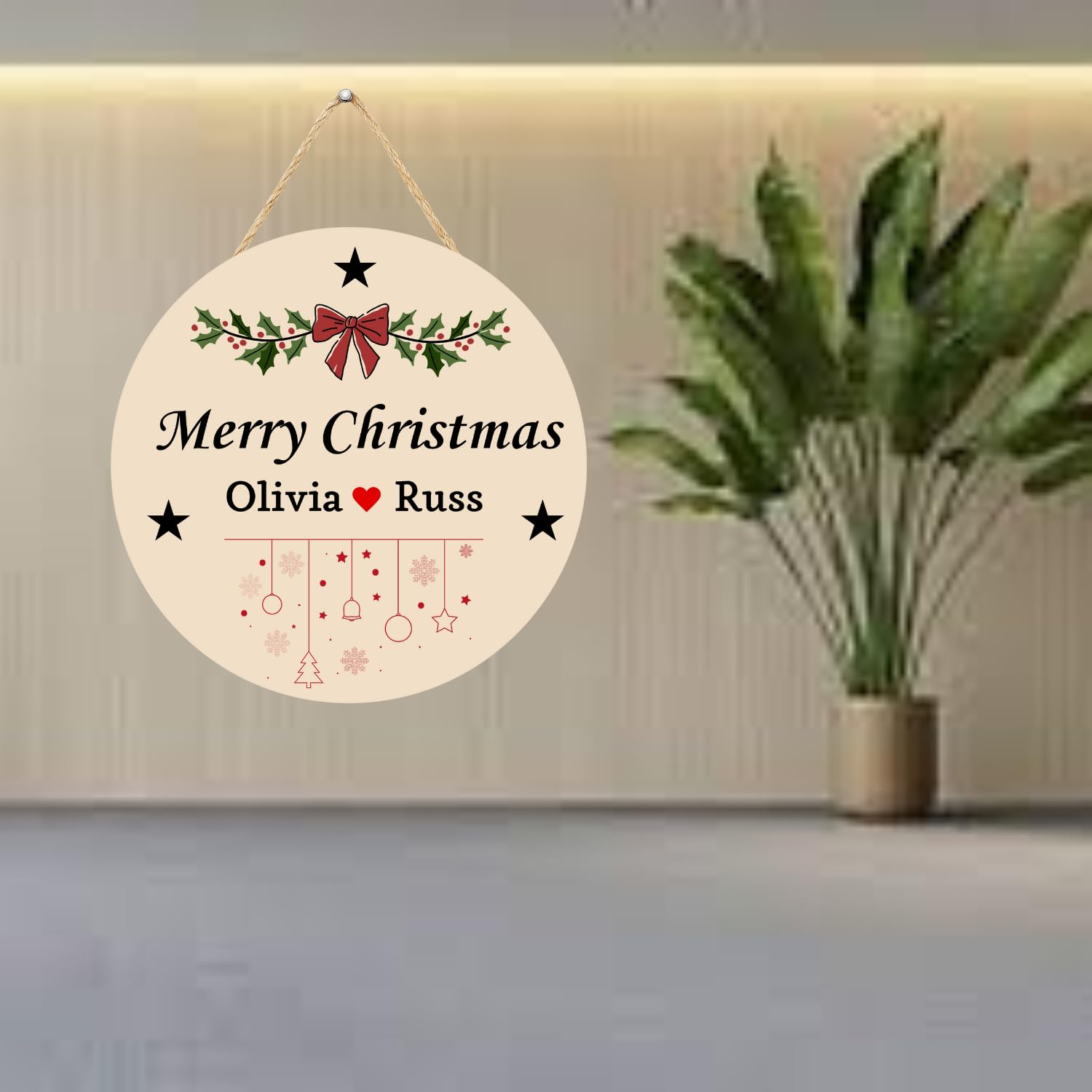 Webelkart Round Wooden Customised Christmas Wall Hanging Name Plate For Home Entrance outdoor,Wooden Hanging House Name Plate - Home Decor Item (10" inches) Customised Hanging