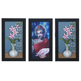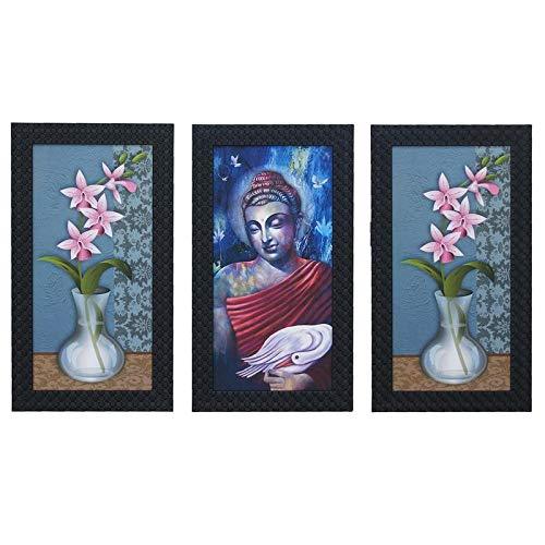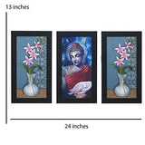 JaipurCrafts Gautam Buddha Set of 3 Large Framed UV Digital Reprint Painting (Wood, Synthetic, 33 cm x 61 cm)