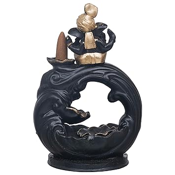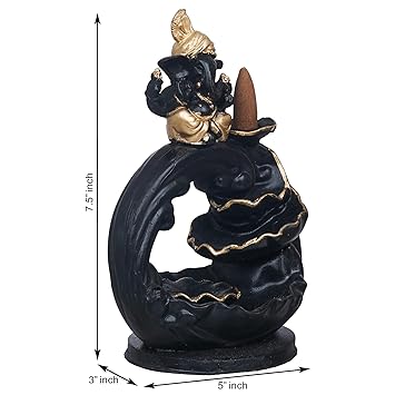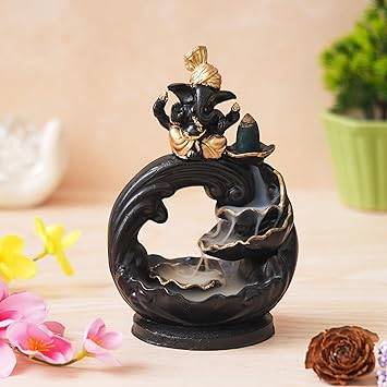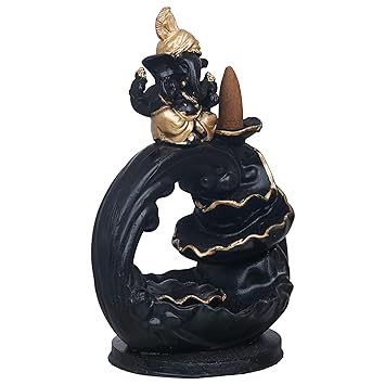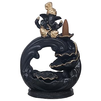 JaipurCrafts Premium Polyresin Backflow Ganesha Smoke Fountain Incense Holder with 10 Units backflow Incense Stick Holder Cones for Pooja, Meditation, Prayer, Home Decoration (7.5" Inches)