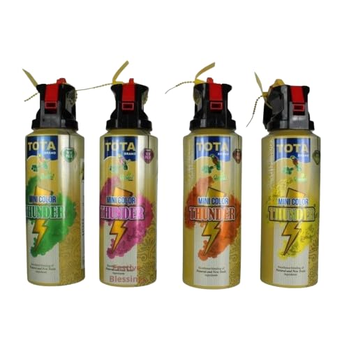 JaipurCrafts Premium Tota Thunder Blaster Holi Gulal Spray Holi Color Powder Natural Skin Friendly Holi Color (Pack of 4) Holi Colour Herbal Gulal Spray Bottle Orange, Green, Yellow, Pink Colour