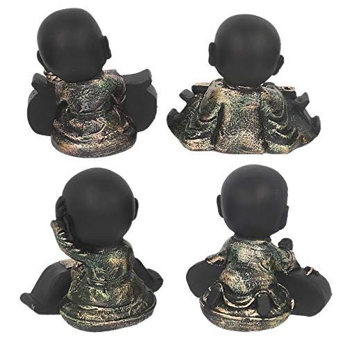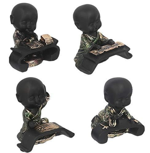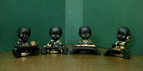 JaipurCrafts Set of 4 Cute Musical Group Child Monk Showpiece - 7.62 cm (Polyresin, Black, Gold)- for Home Decor| Office Decor| Valentines Day Gifts | Diwali Decor| Vaastu Decor| Fengshui