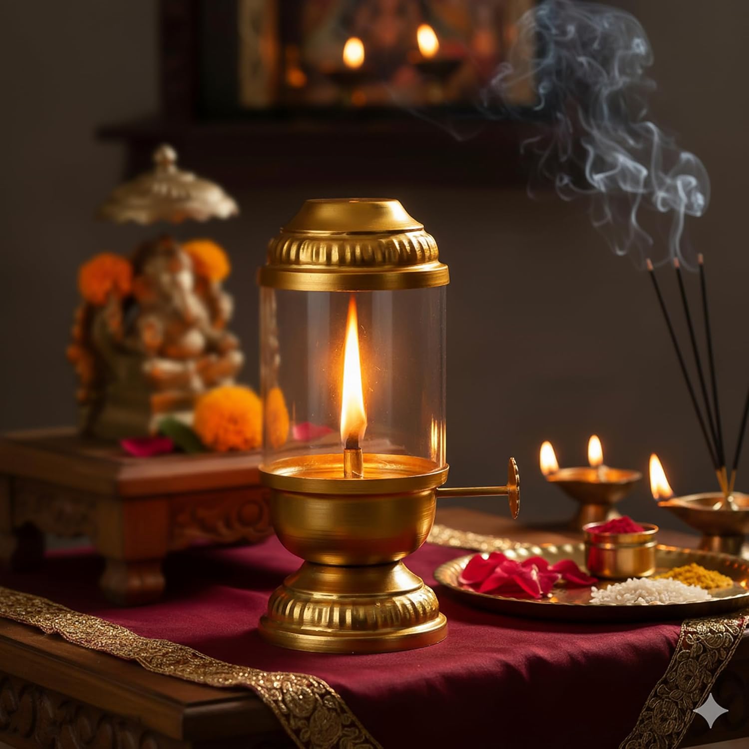 • PERFECTLY SIZED: Measures 8". Gold Brass akhand Diya Oil Lamp for Diwali Decor