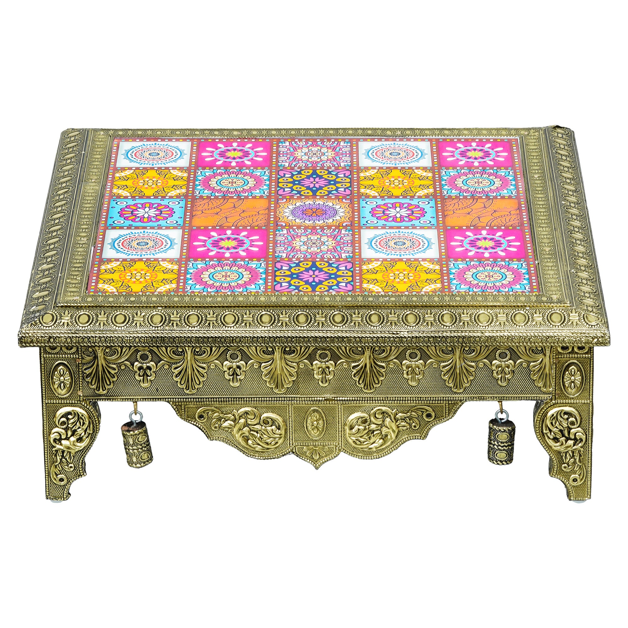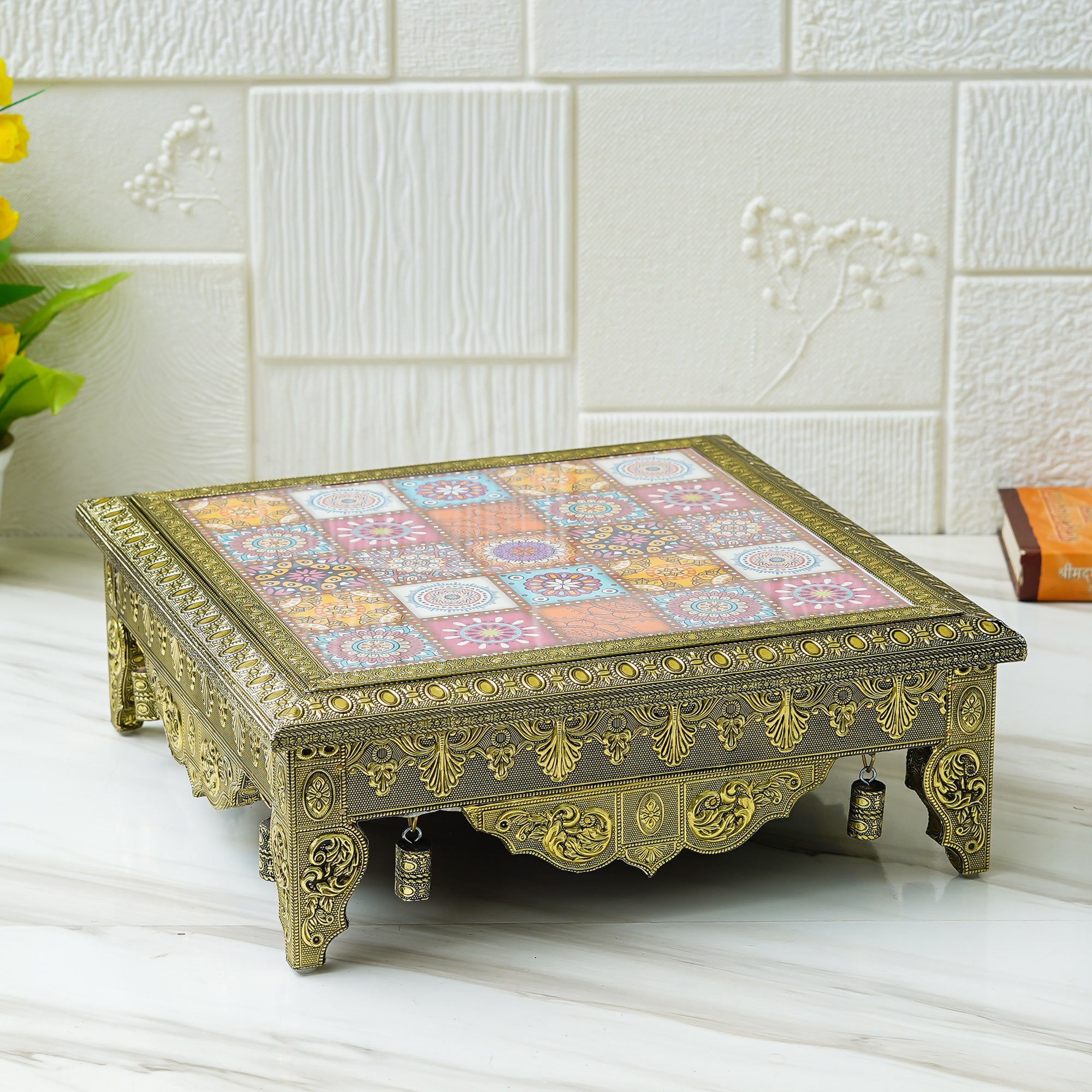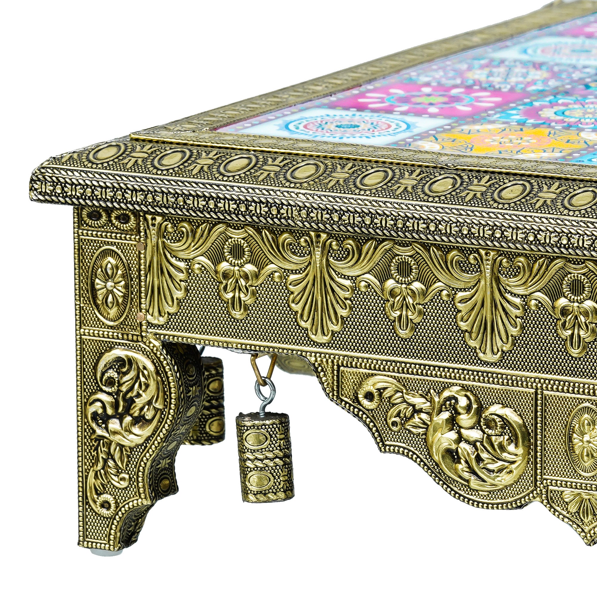 - We present a beautiful handcrafted mdf based chowki / bajot / table with beautiful hand painted designs that can be used to decorate your home's temple mandir ,Diwali decorations items
