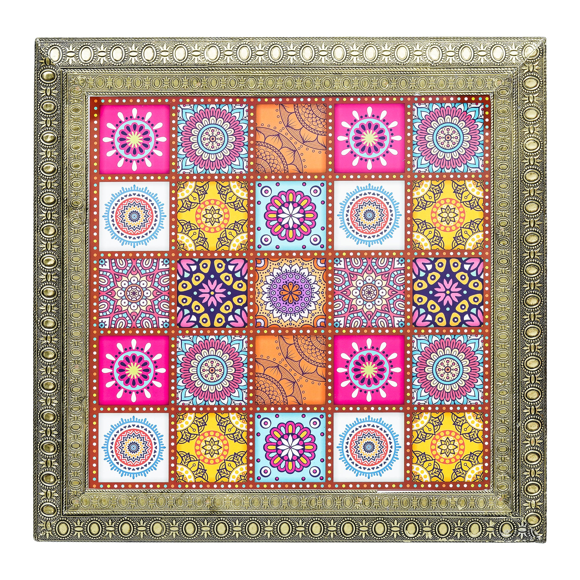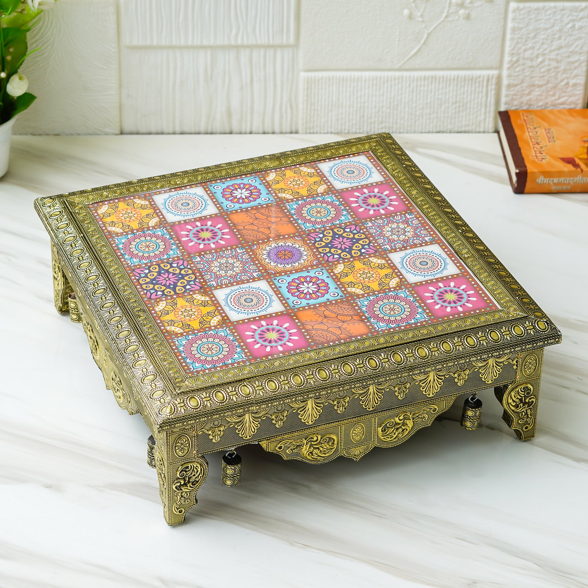 Webelkart Premium Multi Designer Handmade Wooden Rajwadi Chowki/Patla for Home Decor | Wooden patla for puja, Pooja chowki for Diwali Decoration (15"x15" Inches Multi)