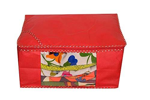 जयपुर क्राफ्ट्स गैर बुना साड़ी कवर सेट, लाल (45 x 35 x 22 सेमी) (पैक ओएफए 1)