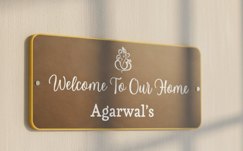 DIMENSIONS: Premium acrylic name plate measuring 20.32 x 10.16 cm (8 x 4 inches), perfect size for clear visibility from a distance CUSTOMISATION: Fully customisable design allows you to add your name, flat number, or any personalised text of your choice VERSATILE USE: Suitable for multiple locations including home entrance,...