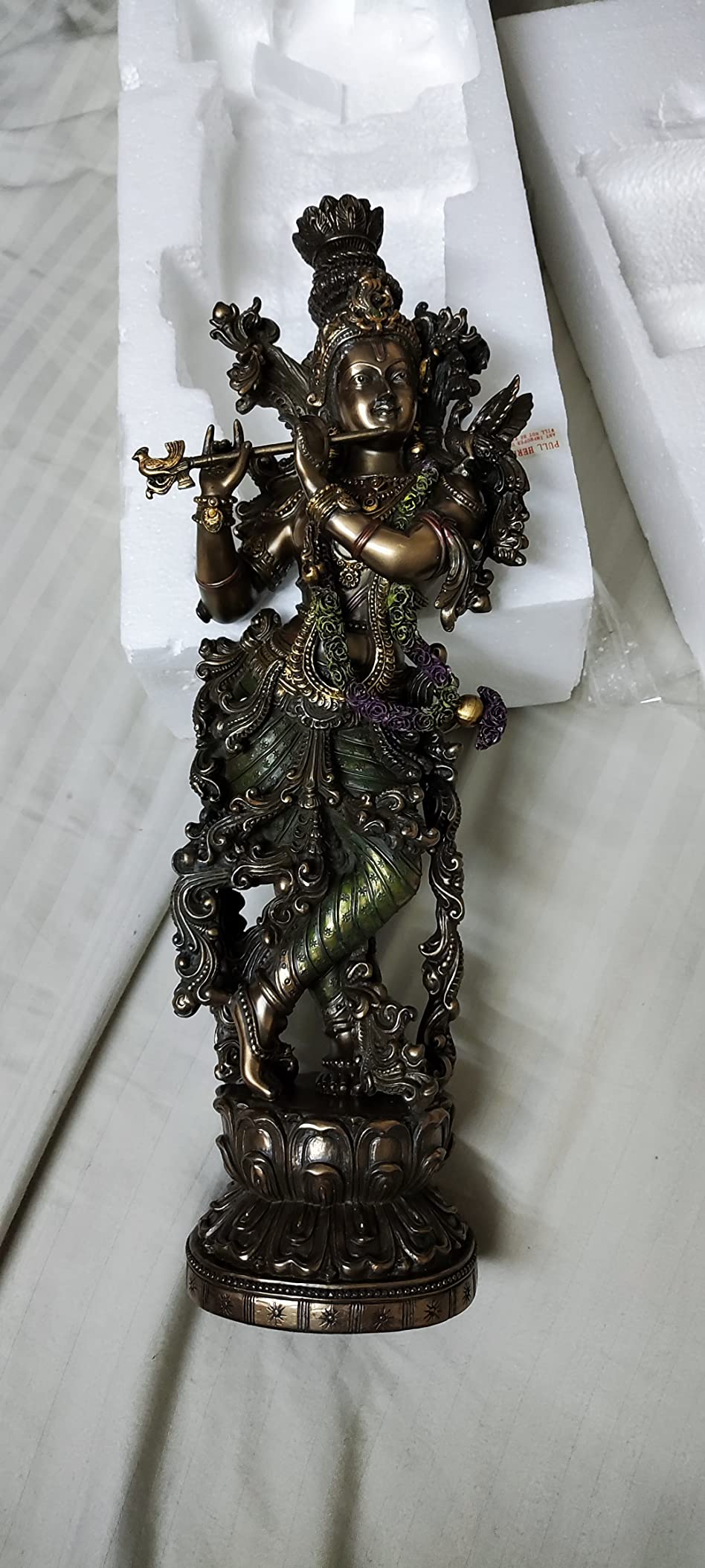 Package Contents: 1 intricately designed Radha Krishna bronze statue for home and pooja decor, measuring 14 x 5 x 3 inches.