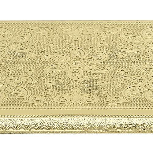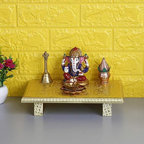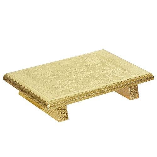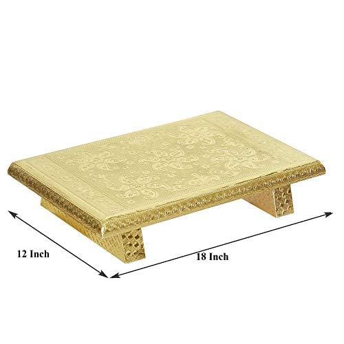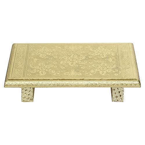 जयपुर क्राफ्ट्स वुडन ब्रास फिटेड गोल्डन राजवाड़ी चौकी/पटला -12"x18"x2" इंच