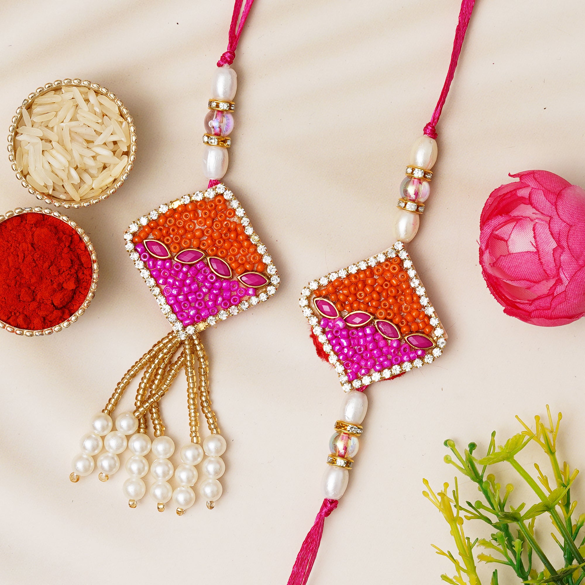 - Package Contains : 2 Rakhi, 1 Packet Roli Chawal, 1 Best Wishes Card