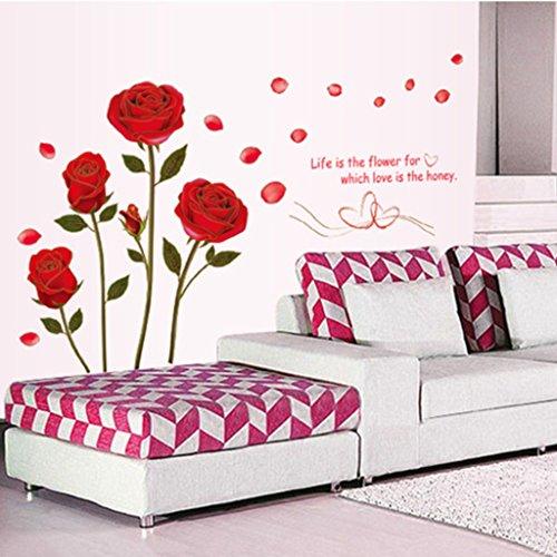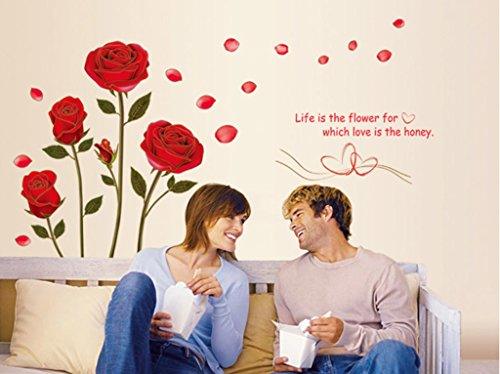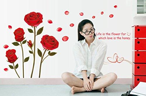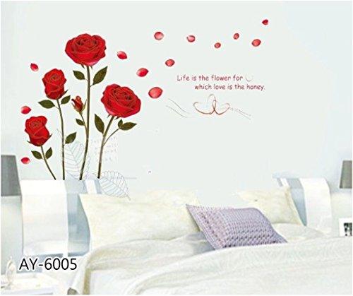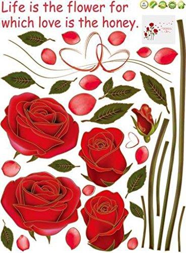 Decals डिजाइन 'रोमांटिक गुलाब के फूल' दीवार स्टिकर (PVC Vinyl, 50 सेमी x 70 सेमी, बहुरंगा)