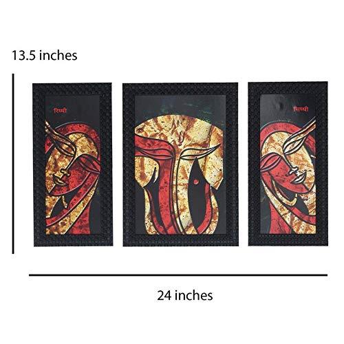 जयपुर क्राफ्ट्स भगवान गणेश और रिद्धि-सिद्धि 3 बड़े फ़्रेमयुक्त यूवी डिजिटल रीप्रिंट पेंटिंग का सेट (लकड़ी, सिंथेटिक, 36 सेमी x 61 सेमी)