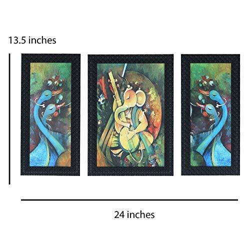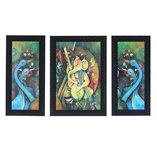 जयपुर क्राफ्ट्स भगवान गणेश 3 बड़े फ़्रेमयुक्त यूवी डिजिटल रीप्रिंट पेंटिंग का सेट (लकड़ी, सिंथेटिक, 36 सेमी x 61 सेमी)
