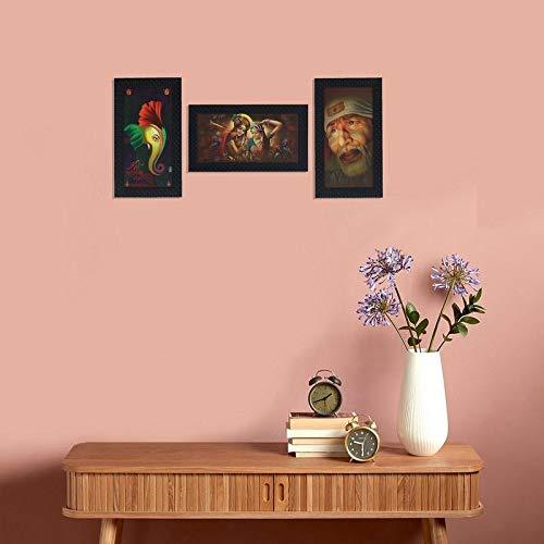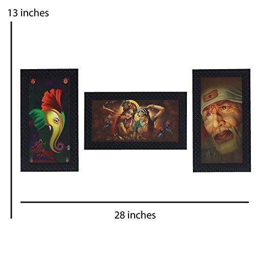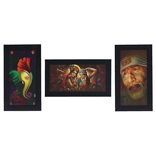 जयपुर शिल्प राधा कृष्ण, भगवान गणेश और साईं बाबा 3 बड़े फ़्रेमयुक्त यूवी डिजिटल रीप्रिंट पेंटिंग का सेट (लकड़ी, सिंथेटिक, 33 सेमी x 61 सेमी)